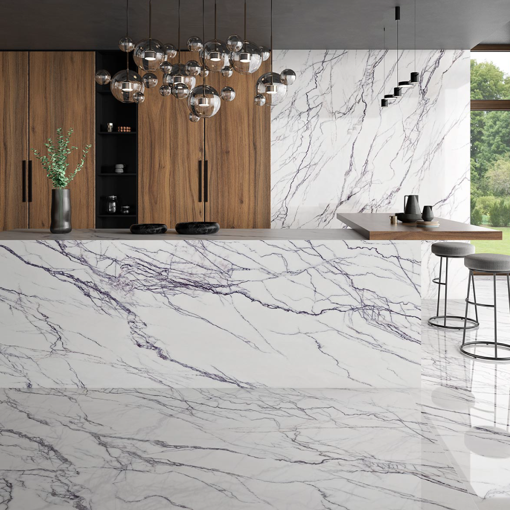 Marblessa Countertops collection is a new sintered mass that provides solutions for kitchen countertop with character and personality. Born as a result of a deep study of decorative trends and the most contemporary demands. Its large dimensions 63"x126", and the extremely high-performance technical features make it an ideal material for the most demanding product applications such as kitchen countertops.