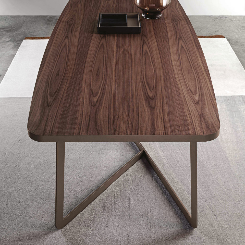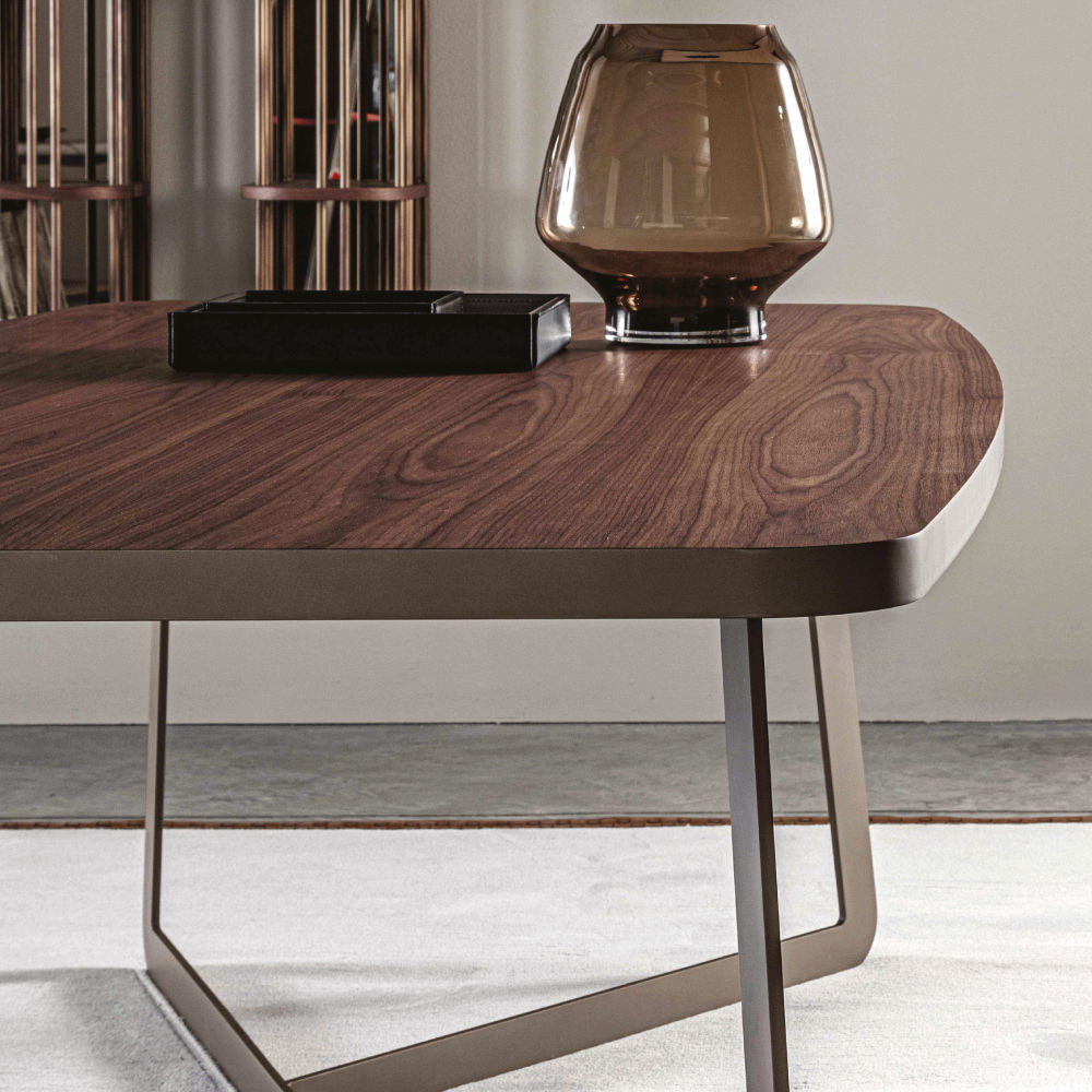 A light and elegant design for the Lipari table. The top, drowned in the side band, is available in the essences of the MC collection. While the particular design of the base is made of metal.