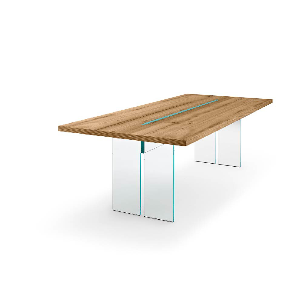 Dante Oscar Benini and Luca Gonzo are the designers of several pieces of furniture in curved glass by FIAM. They have designed in particular the LLT collection , which includes consoles, desks and tables.