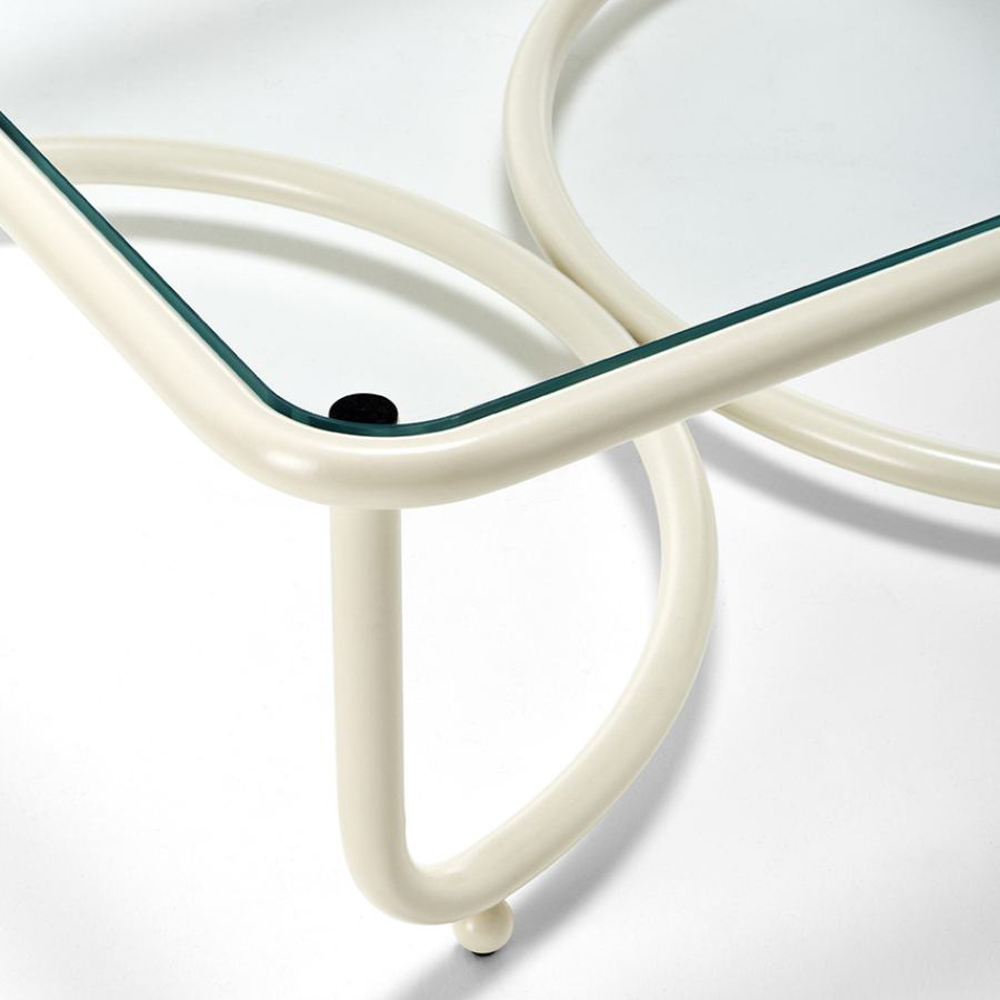 The glass top allows for a full appreciation of the tubular design. Lightweight lines come together boldly to create a coffee table that invites unforgettable moments together.