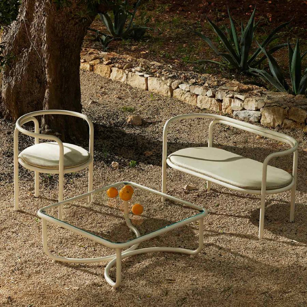 The collaboration spontaneously born between Exteta and Jacquemus brings back the iconic Locus Solus collection from 1964 in an original edition, bearing the prestigious signature of Gae Aulenti. This pop series offers strong lines with a vintage charm, renewed in fabrics and colors through the contemporary vision of designer Simone Porte Jacquemus, who has always been an admirer of Aulenti's work and a devoted collector of her chairs. This capsule collection combines the Italian craftsmanship of Exteta with the bold taste of Jacquemus, Parisian fashion brand with an unmistakable touch.