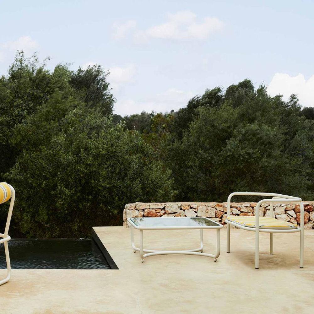 The frame of the Locus Solus Low Table is made of painted stainless steel tubulars. This capsule collection offers an Off-White metal structure.