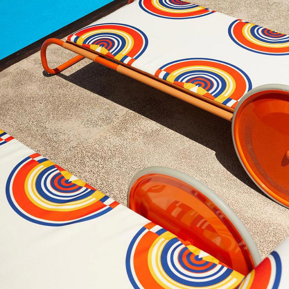 Circular and linear tubular volumes celebrate the two-dimensionality typical of iconic 1960s’ design. Locus Solus Sun Longer is a tribute to the Dolce Vita of Italian beaches.