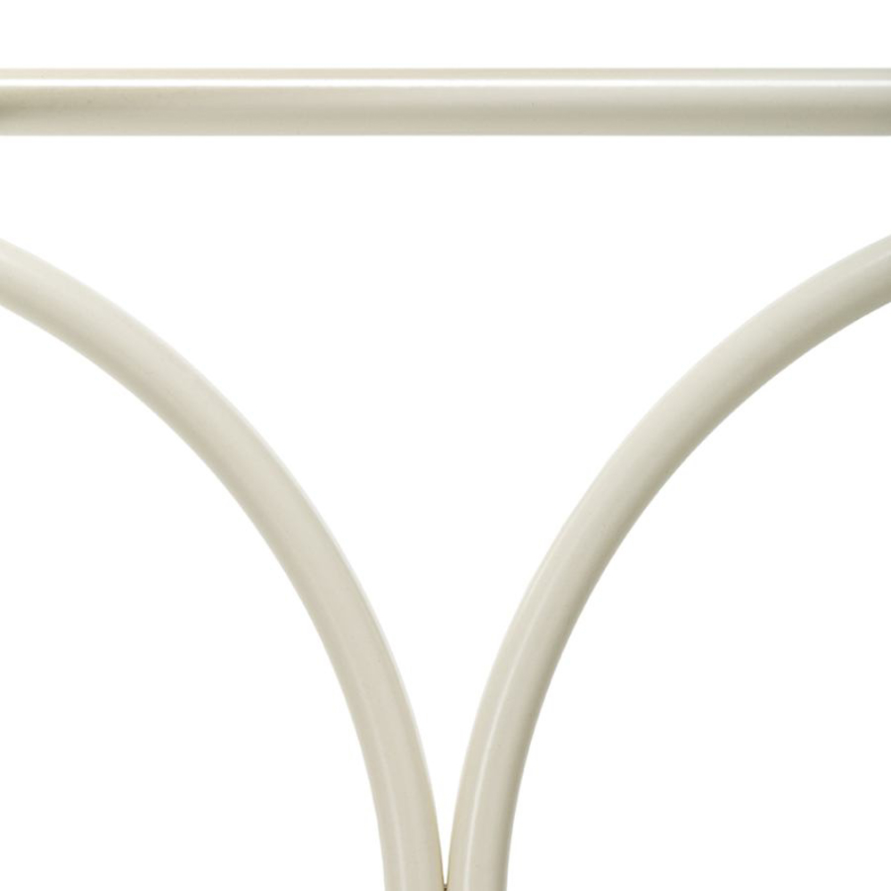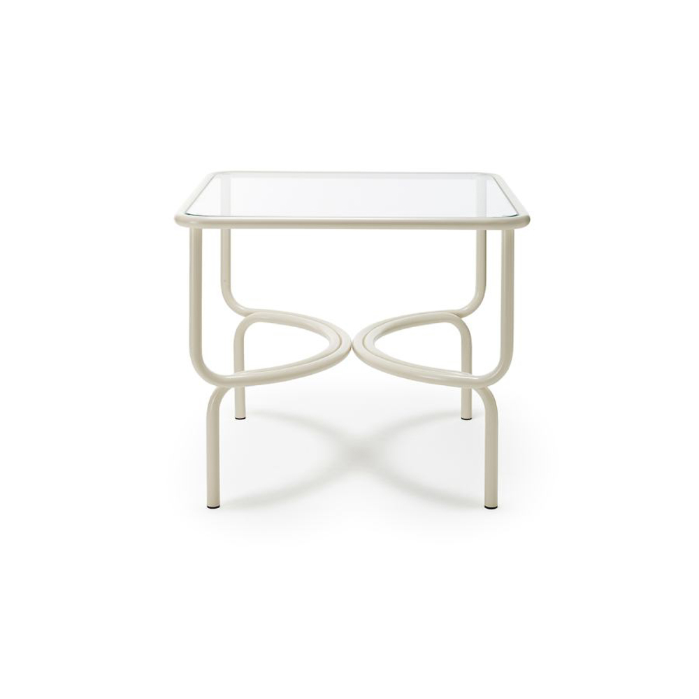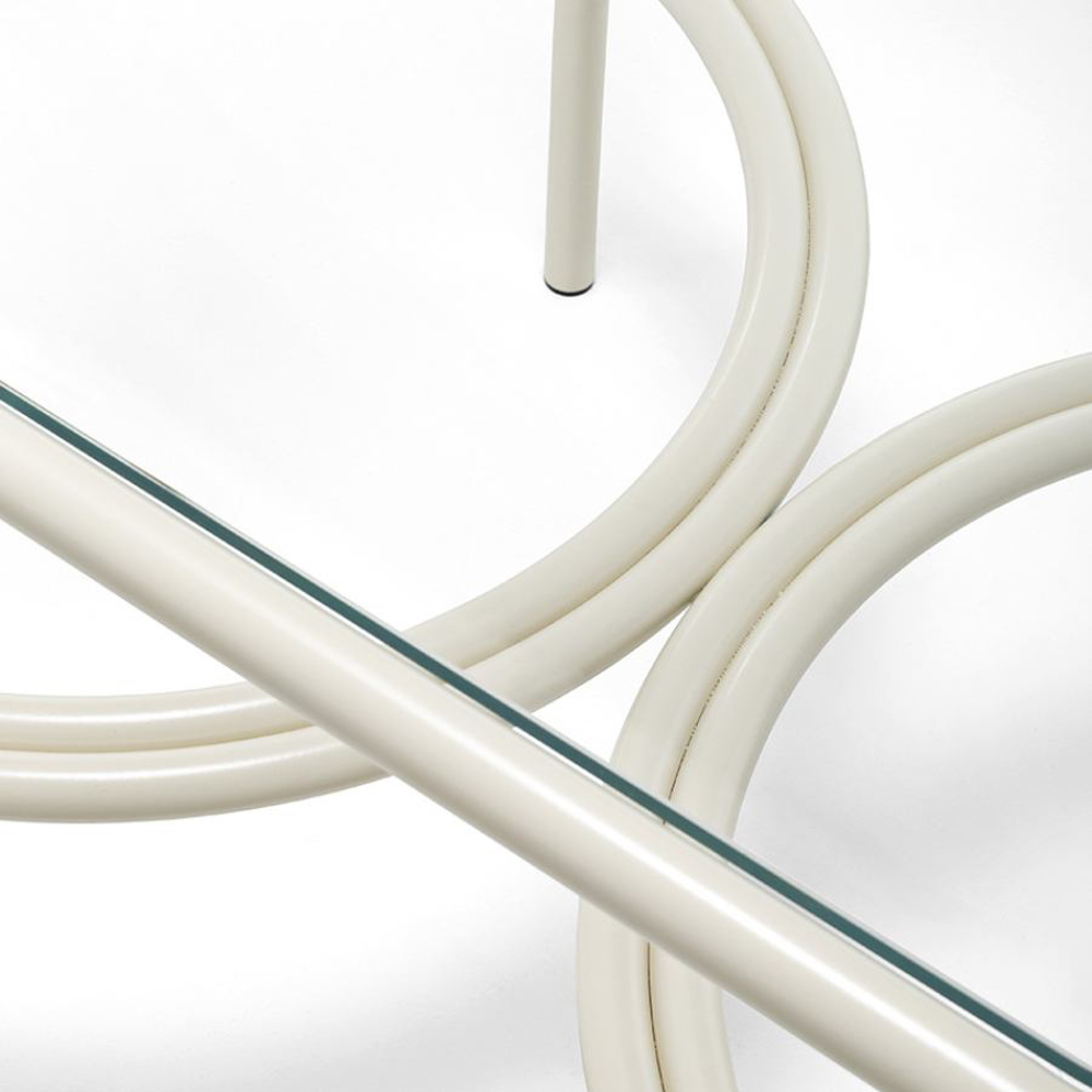 The frame of the Locus Solus Table is made of painted stainless steel tubulars. This capsule collection offers an Off-White metal structure.