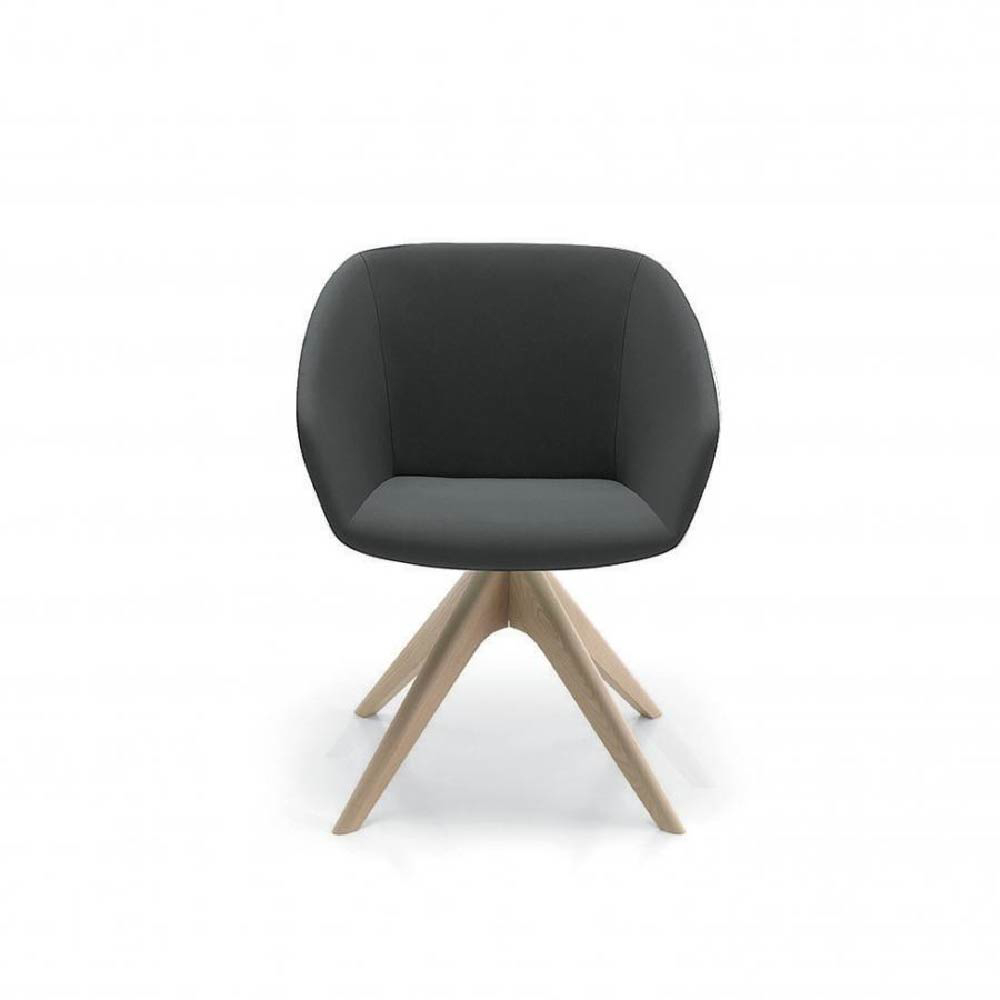 Look Armchair with an open, wide shape, available with metal or wooden bases. An armchair with an open and welcoming design, featuring clean and wide lines.