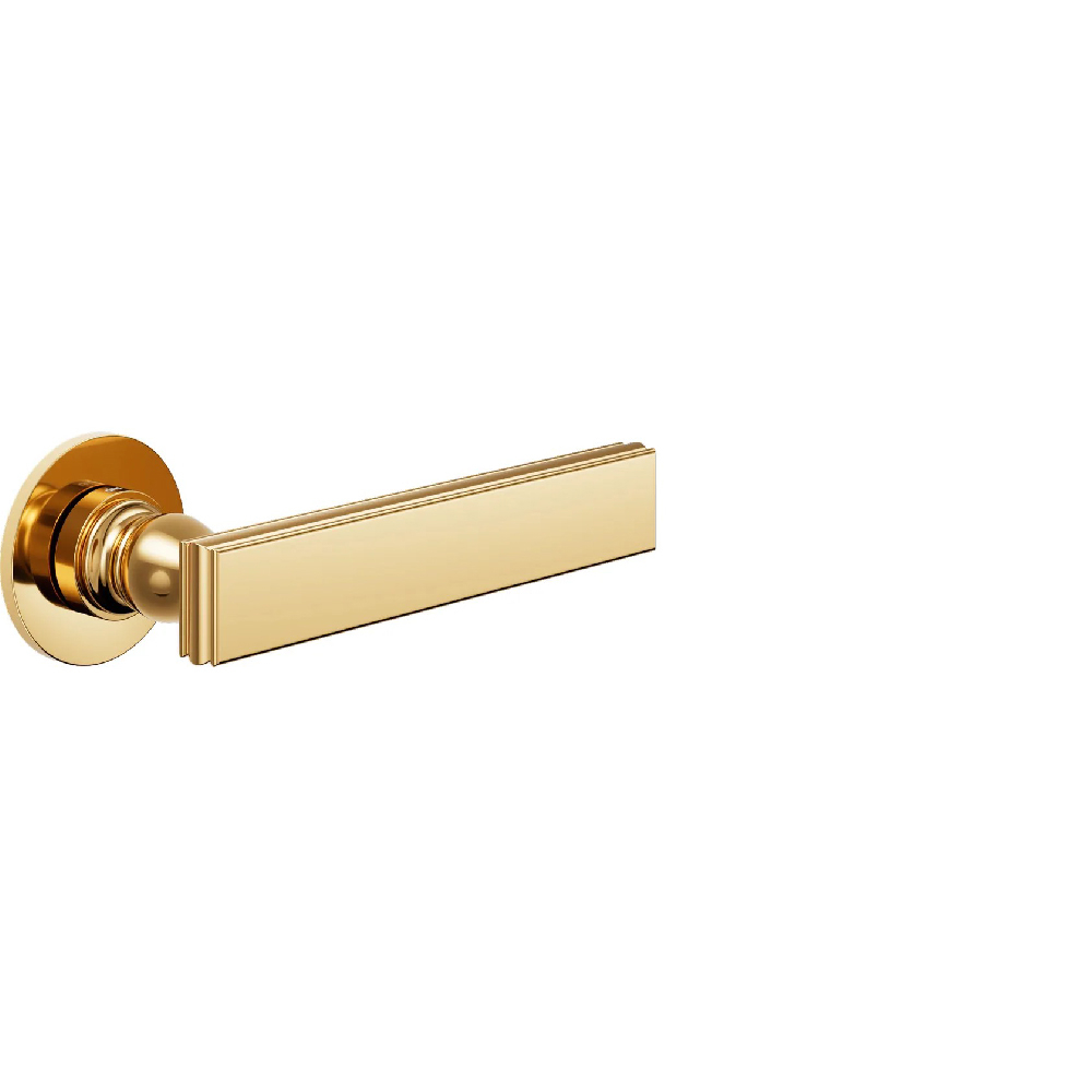 Renaissance references in the fine shaping of the stem, joined by the design of the grip: a rectangular form lightened by elegant-shaped borders.