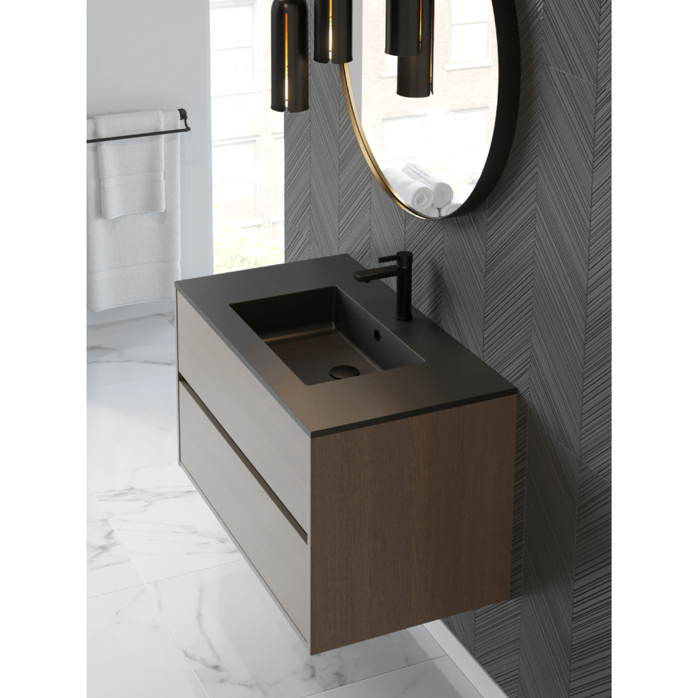 36" Modern Wall Hung Bathroom Vanity Sink, Riel Matt Gray