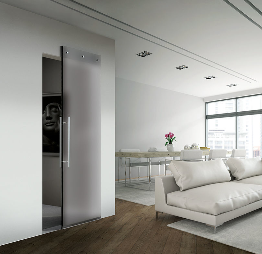 Lume is a Legnori door entirely made of glass that combines functionality and design in a single panel. The standard glass doors or sliding glass doors are perfect in narrow environments and allow to create unique atmospheres thanks to the multiple glass finishes. You can choose between stopsol lacquered panel, decorated with digital print, laminated with fabric inserts.