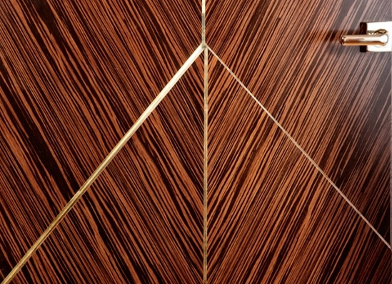 Faces with volumetries and golden inlays. Similar to rebated door. Hollow core / Solid core.