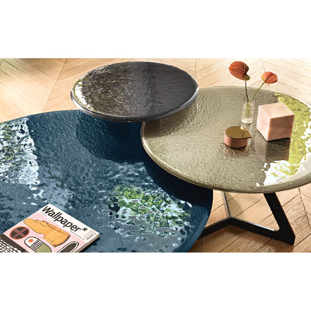The collaboration between FIAM and Studio Klass has led to the creation of many pieces of furniture in glass: Magique coffee tables, Magique Totem display cabinet, Plié collection, Lakes coffee tables and Flaminio dining table.