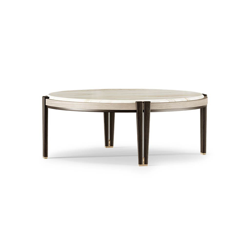 The elegance of the Mary center table echoes in its shape and materials. Simple yet sophisticated, the generous silhouette fuses with the marble nobility, contrasting with wood in different colors. Its presence will bring luminosity to any living room design.