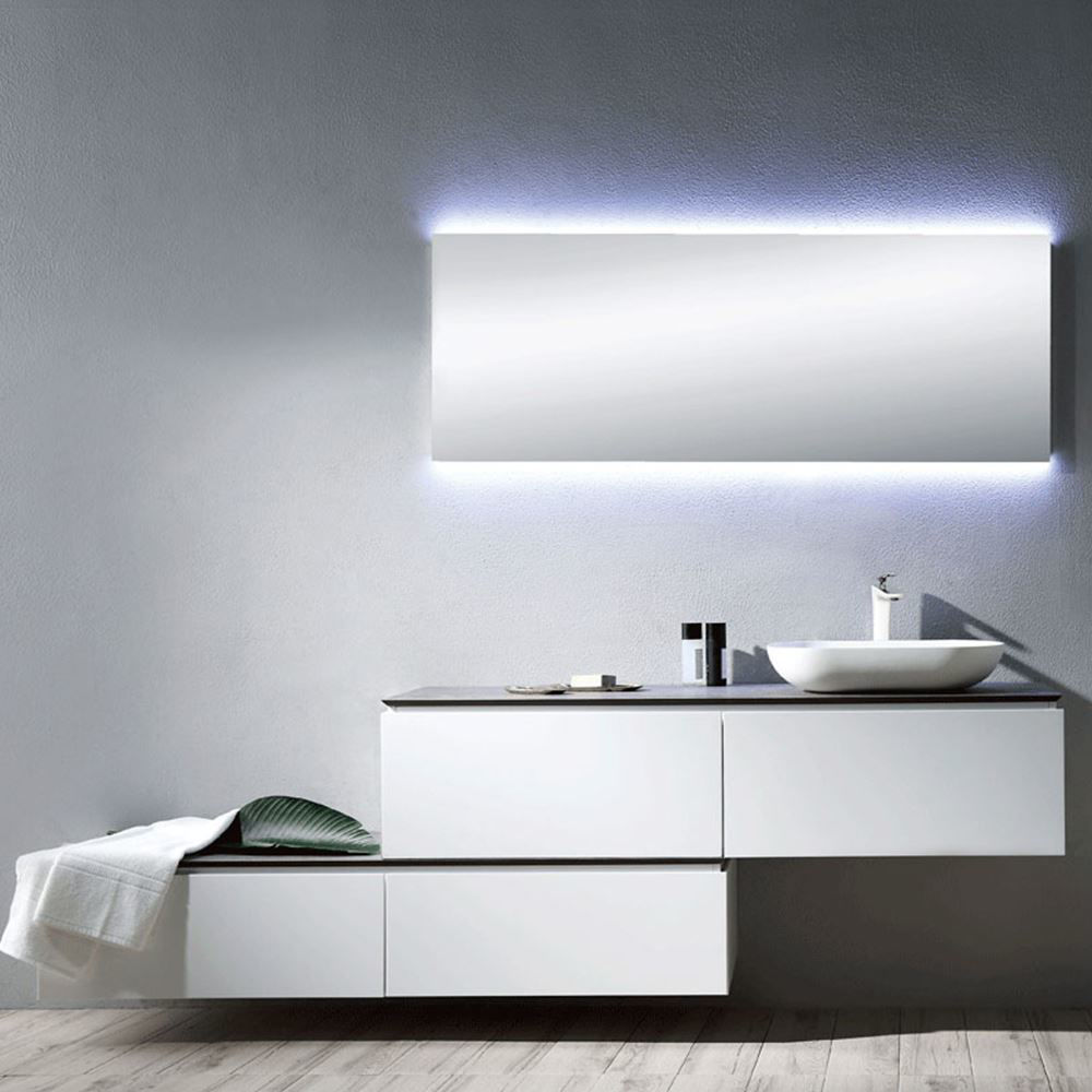 Bianca frameless and modern LED mirror will open up your bathroom with its elegance, invisible LED illuminated lights from top and bottom, clear silver color, and perfectly shaped corners.