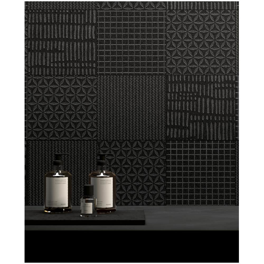 Italian Porcelain Décor Texture Mix Noir 8" x 8" 3/8" Natural