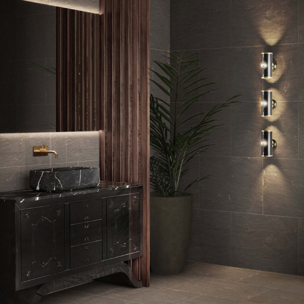 Black lacquered mirror and nero marquina marble.