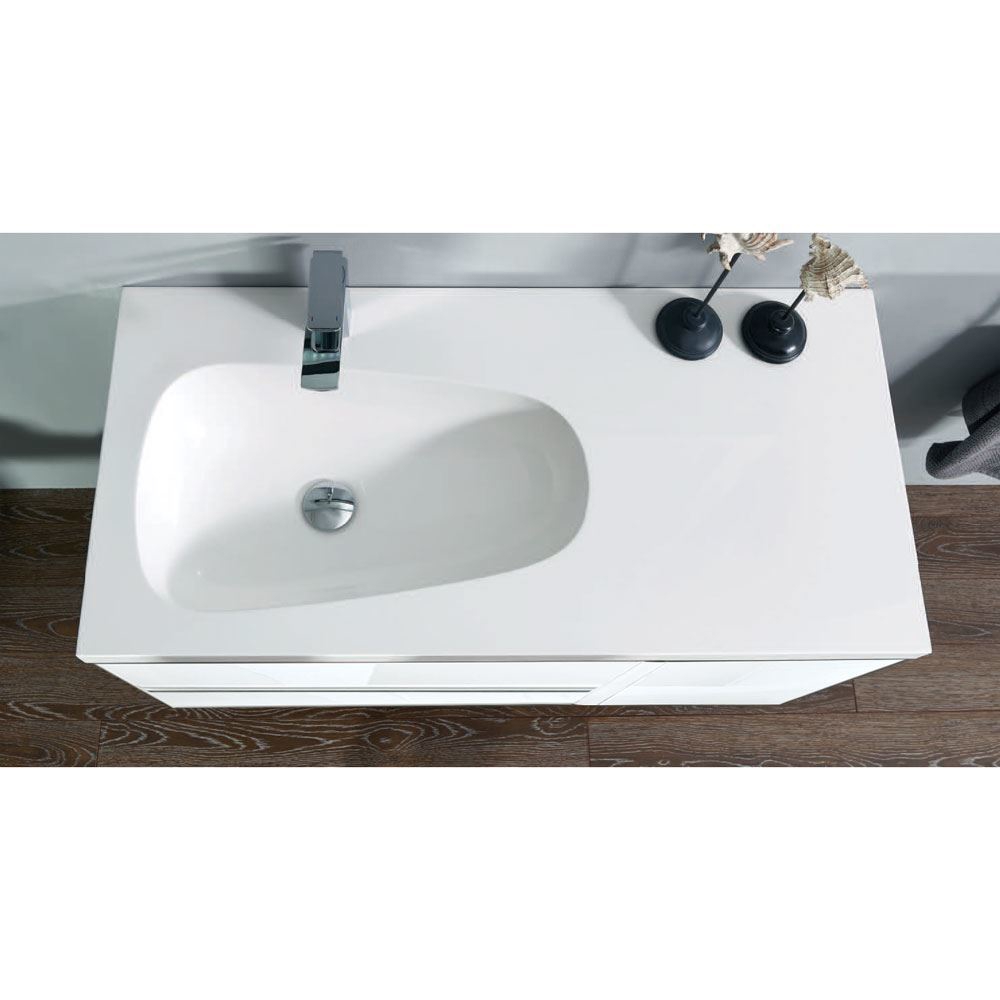 This contemporary designed single bathroom vanity cabinet Mistra Glossy White is a unique combination of casual and elegant. Designed to complement any decor scheme, the wall-mounted bathroom cabinet features a glossy finished solid architectural plywood and soft closing concealed handle drawers.