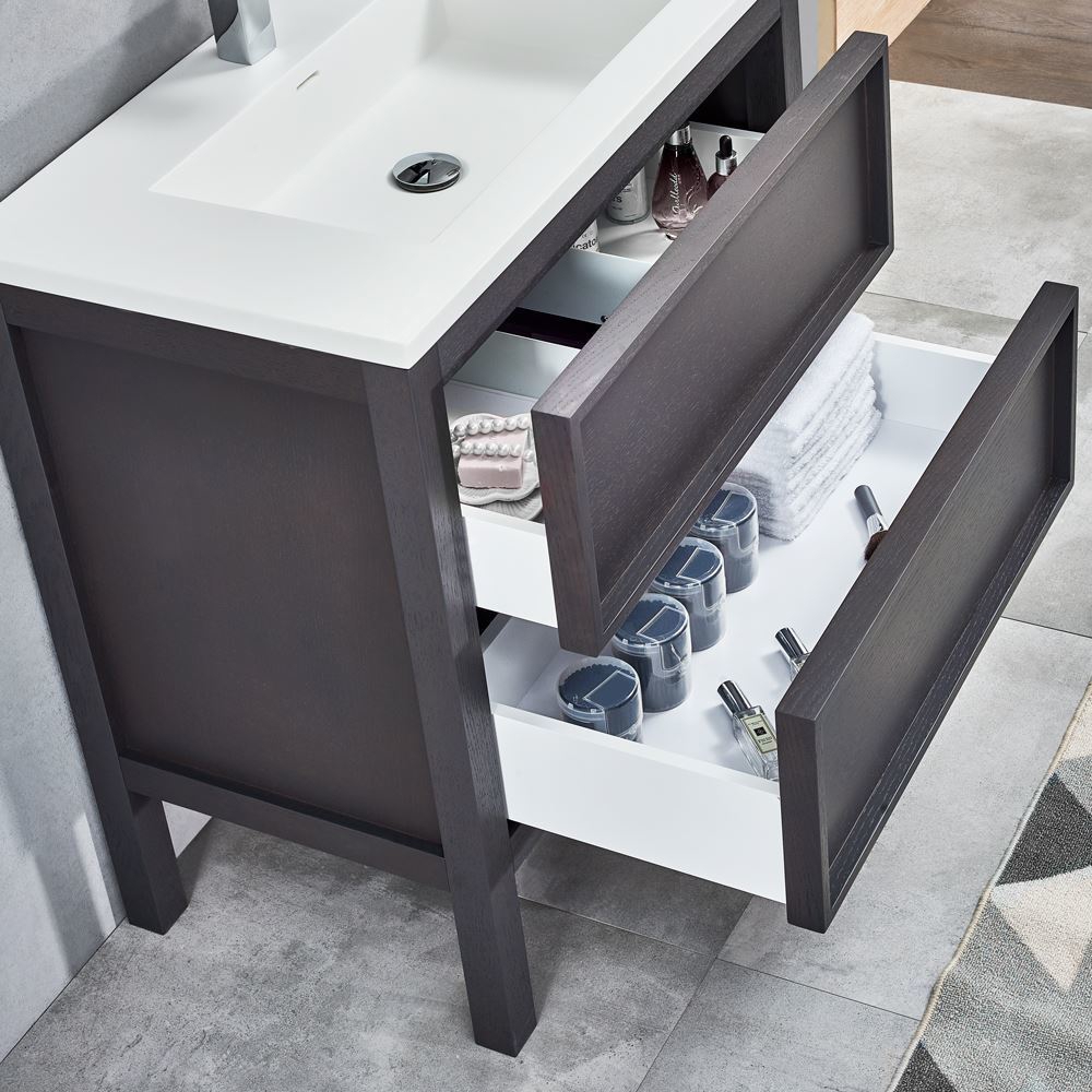 The high-quality suitable plywood and moisture proof board are the key materials of the cabinet. The rail we are using is corrosion resistant stainless steel, with a heavy-duty self-closed sliding feature.
