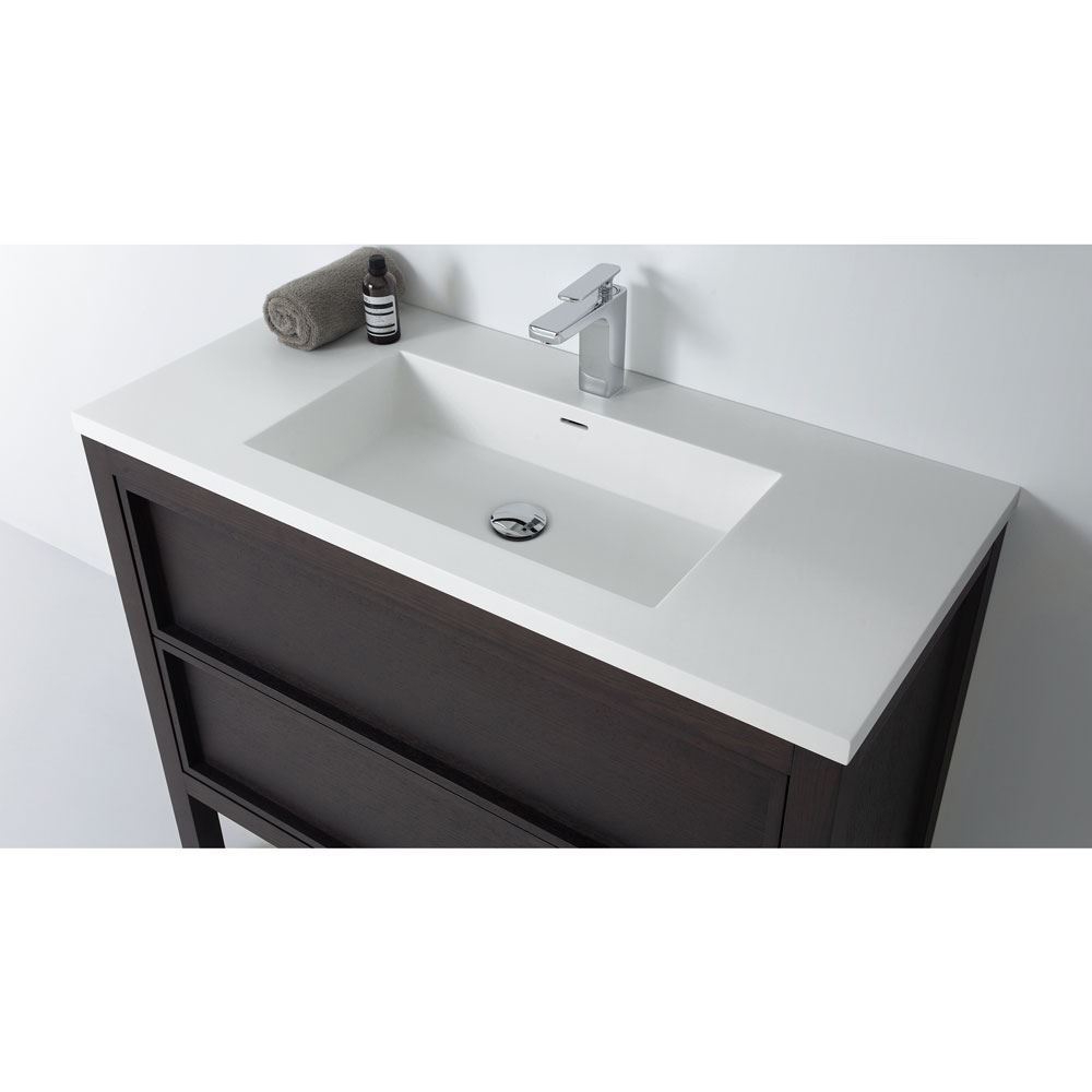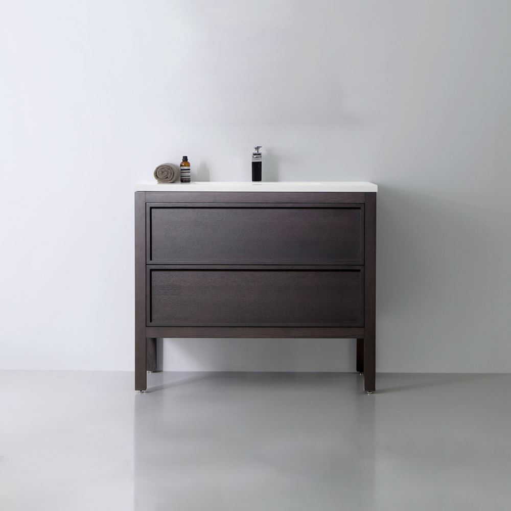 This freestanding Dexter Brown bathroom vanity sink is an alternative way to show your unique, fashionable and elegant taste. Glossy white rubber sink is emphasizing the European elegance.