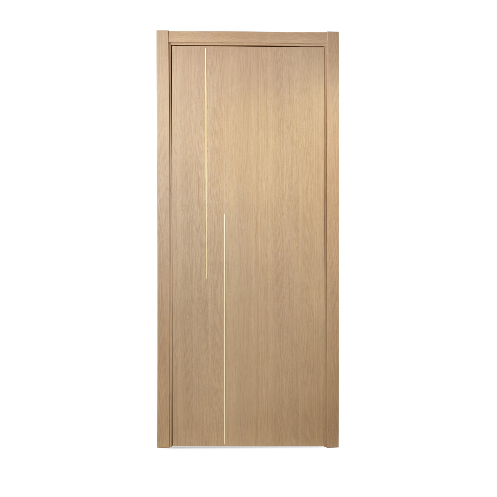 Modern White Oak Interior Door with 2 Vertical Brushed Gold Aluminum Lines is a stylish prefinished modern wooden interior door designed to bring contemporary elegance and functionality to both residential and commercial spaces. Featuring a refined White Oak wood finish and advanced Made in Italy surface technology, this interior door offers a warm, natural tone with exceptional durability, scratch resistance, and long-lasting performance. The elegant White Oak finish blends effortlessly with modern, minimalist, and contemporary interior styles, making it an excellent choice for modern homes, apartments, offices, and commercial environments.