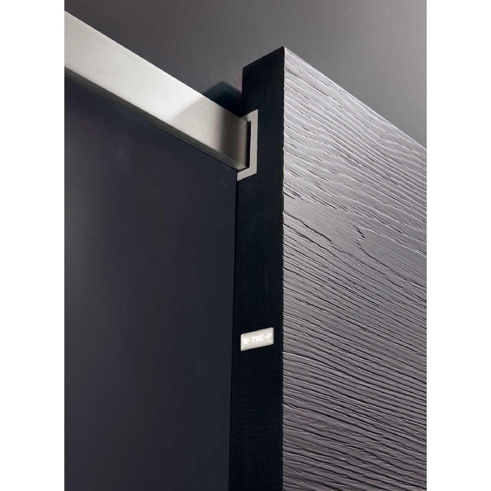 The new processing Scultura is the one which better enhances the full panel models, suitable to focus the attention on the elegance and the materiality of the door. Door panel and track exhibit a modern and endearing design, which makes this new sliding outside the wall door a piece of refined contemporary technologic dimension.