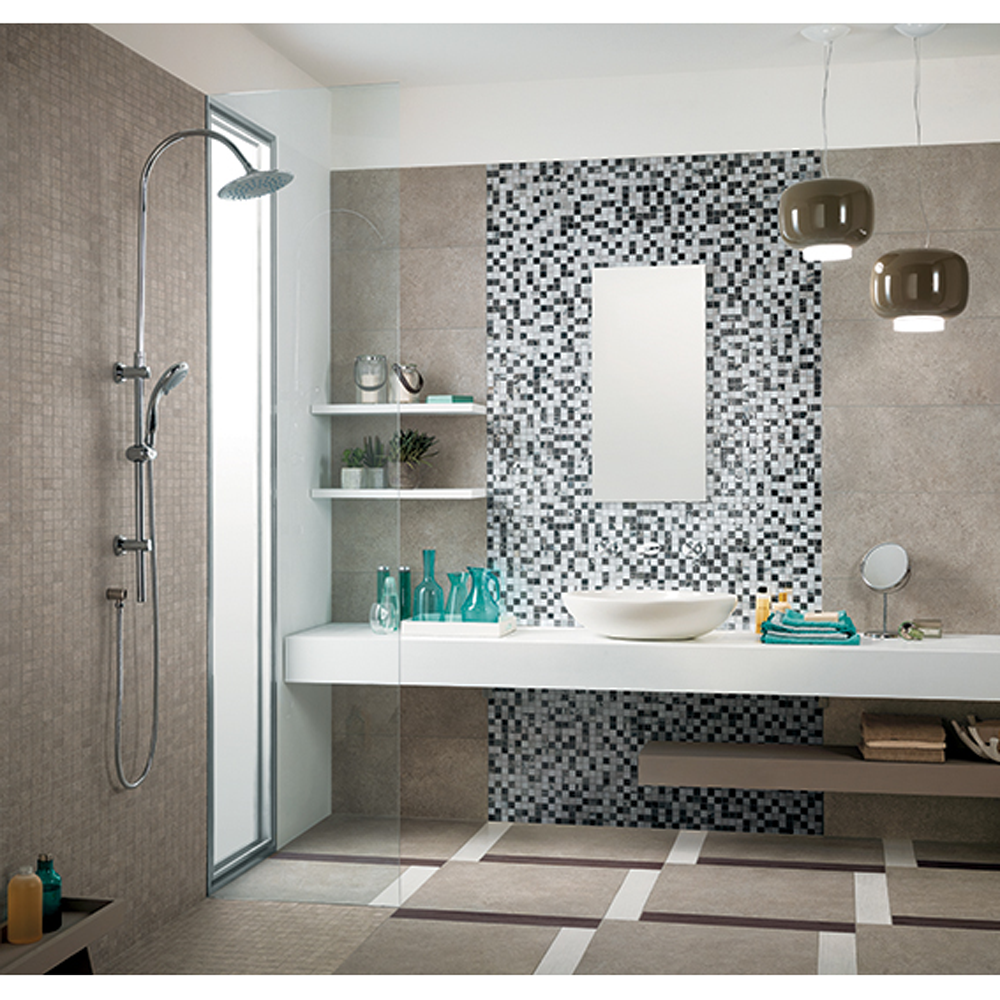 Mashup presents a monochromatic neutral backdrop enriched by inclusions of materials and by using a balanced mix of conglomerates and carefully selected flakes. This gives life to floors and walls with a hybrid and original appeal, with an indirect affinity to natural stones.