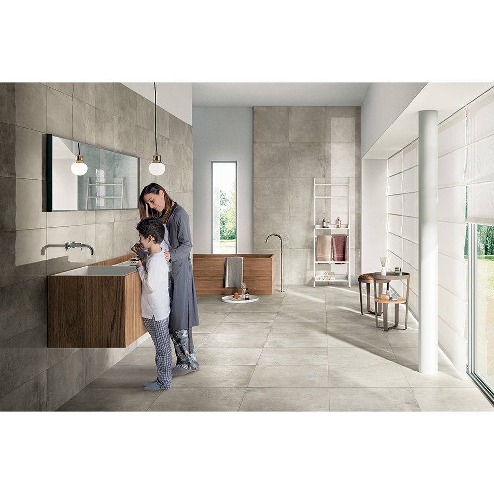 Officine has a technological soul in porcelain stoneware, the most reliable and performing material for commercial and residential buildings. Officine outdoor spaces feature a concrete look and are available both for Outdoor and Indoor applications in different colors and sizes.