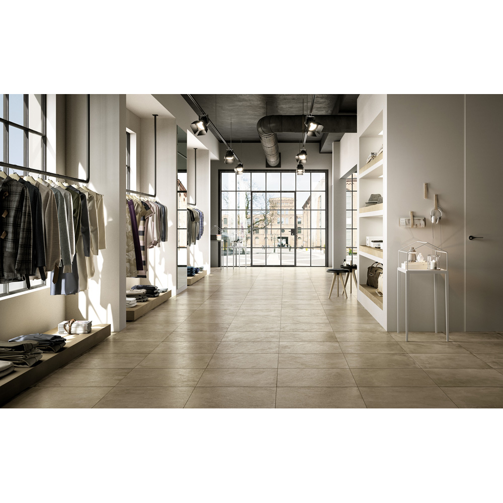 Officine has a technological soul in porcelain stoneware, the most reliable and performing material for commercial and residential buildings. Officine outdoor spaces feature a concrete look and are available both for Outdoor and Indoor application in different colors and sizes.