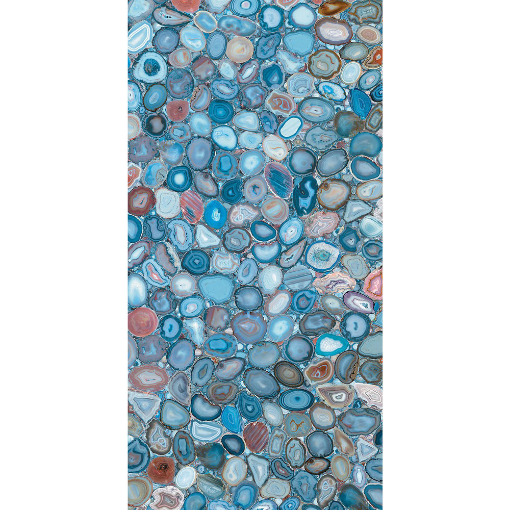 The combination of craftsmanship and the most advanced technology creates unique works for covering, furnishing and interpreting your surroundings. The Privilege slabs are veritable jewels for covering surfaces: interpretations of sophisticated and precious stones such as onyxes, crystals, minerals and elements of pure design. Privilege is available in the 63" x 126" and 48" x 110" formats with 8 mm thickness, besides the traditional 48" x 96" format with 11 mm thickness. BOTTEGA collection in which decorations and large-size slabs can form an expressive combination offering sophisticated and extraordinary wall covering solutions for your design.