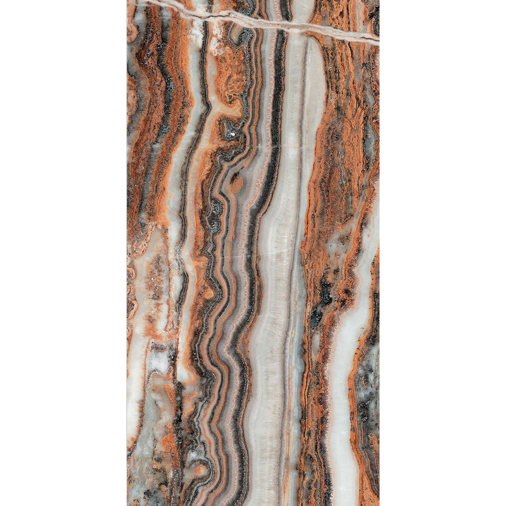 Resinated porcelain stoneware is a precious slab manufactured onto printed support covered with a special resin that exalts the depth and brilliance of surface graphics.