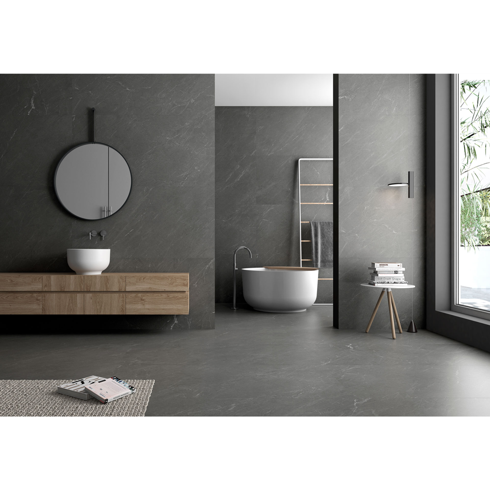 Graphite is a gray tone with fine white veins that perfectly simulate the Cardoso stone from which the series comes.