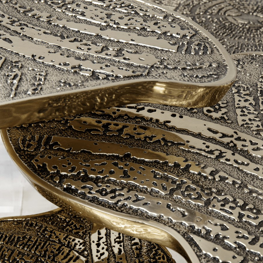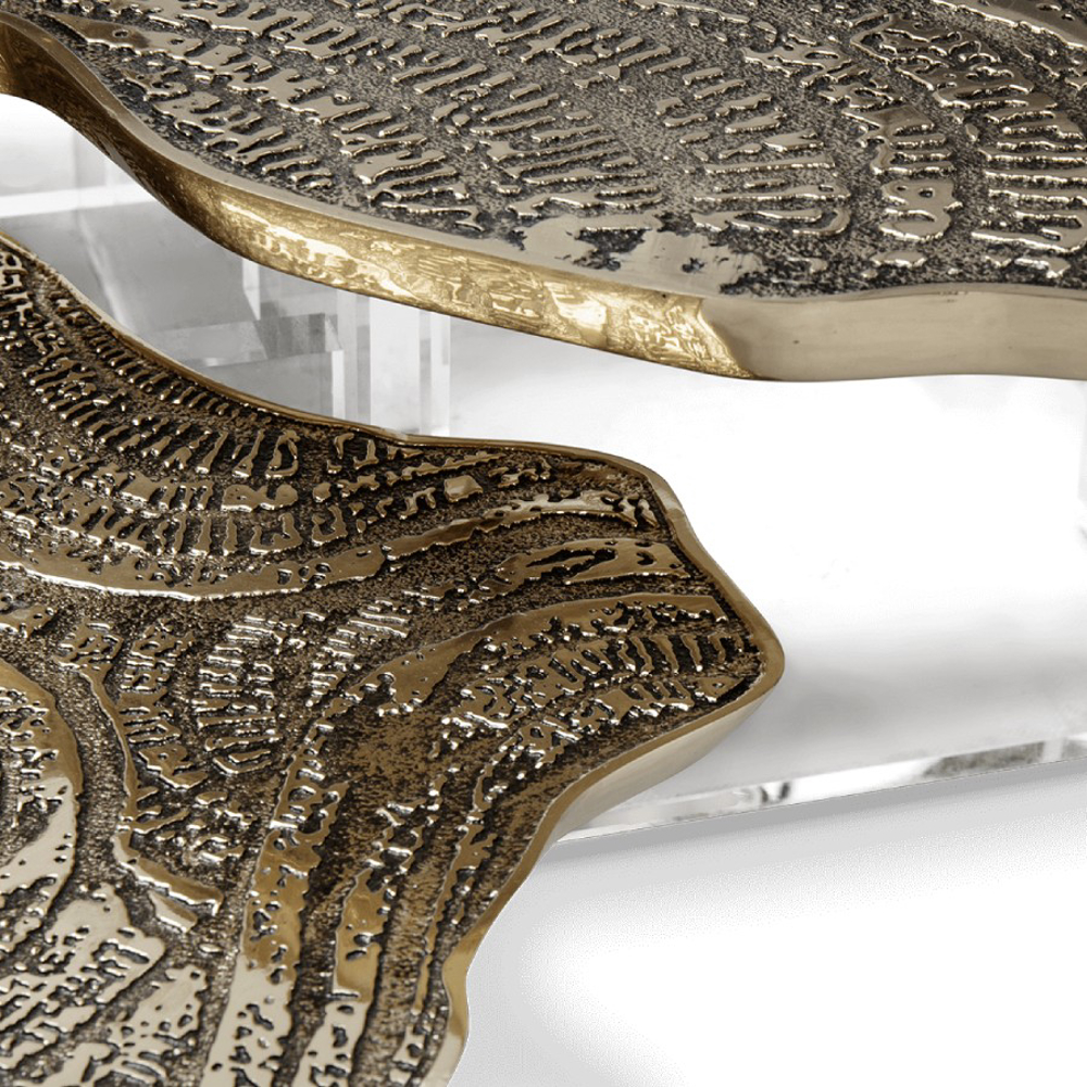 Depicting nature in an innovative way, the Water Lillies series are gently brought to life in an elegant coffee table with gold surface made from cast brass with a unique textured finish. Featuring both contrasting shapes and materials, as the unconventional compositions of the artist, the contemporary coffee table is supported by a geometric acrylic base, allowing to capture natural light. An immersive exceptional objet, the Monet center table is perfect for cutting-edge living rooms.