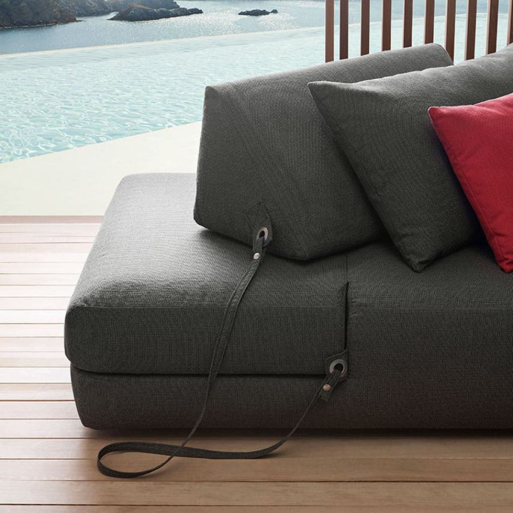 The minimal design enhances the modular system of the sofa, that allows the personal taste to takeover the standards and create totally unique outdoor landscapes.