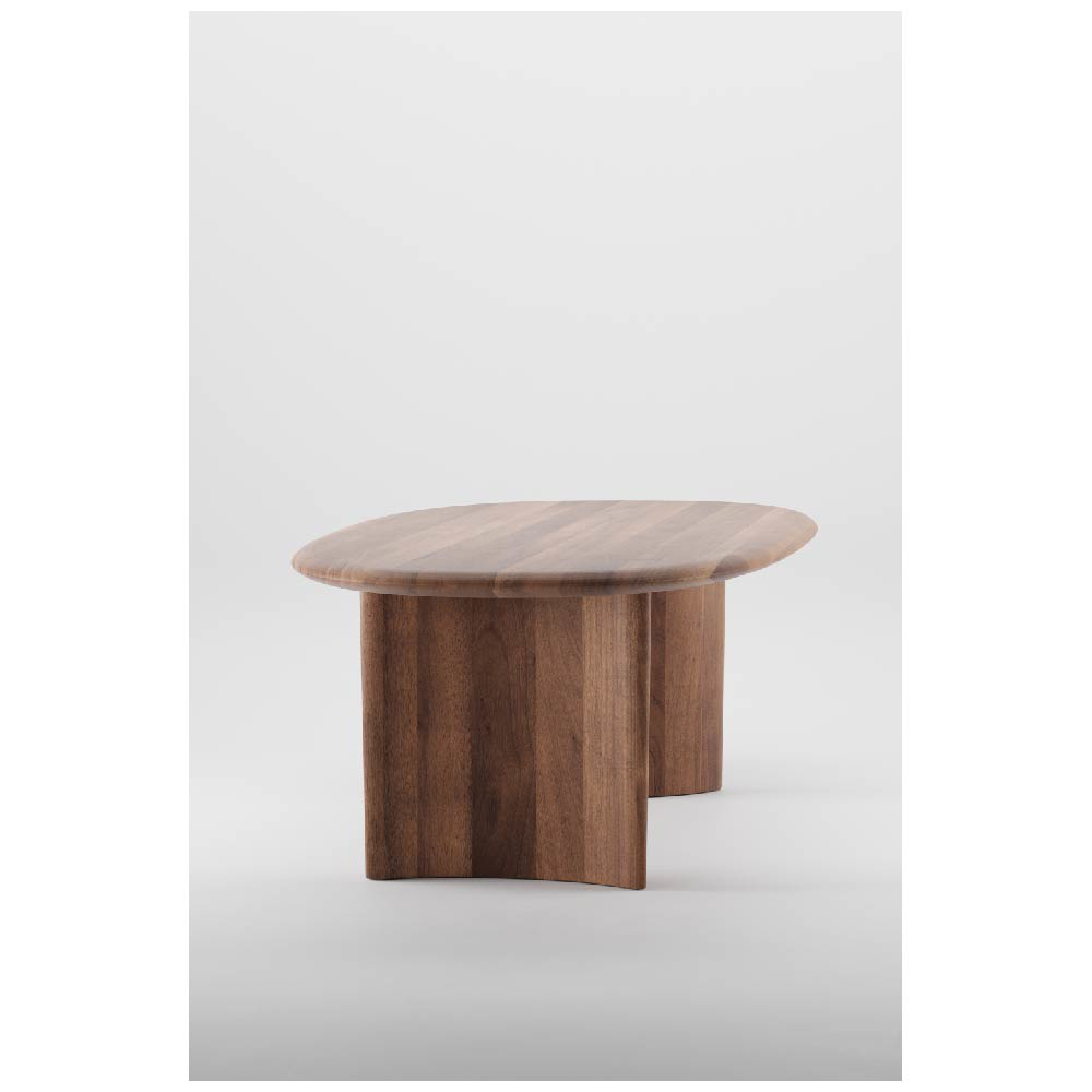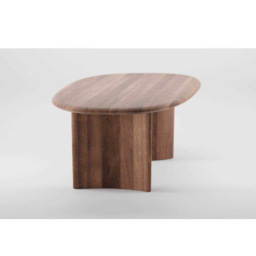 The table’s distinctive design features a uniquely shaped top and legs positioned at varying angles, creating a dynamic appearance from every viewpoint. Offered in a selection of wood finishes, the Monument table can be customized to suit a variety of interior aesthetics. This piece embodies Artisan’s commitment to innovative design and exceptional craftsmanship, making it a bold and unforgettable addition to any environment.