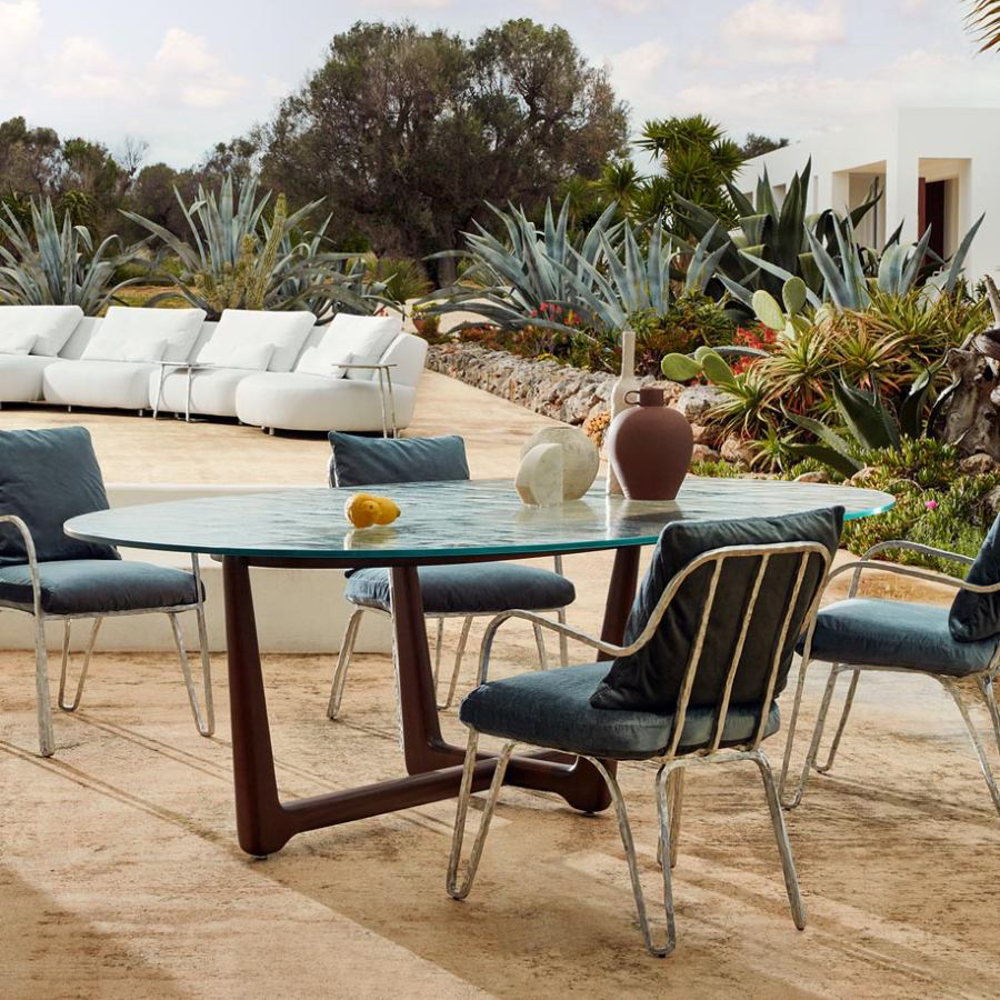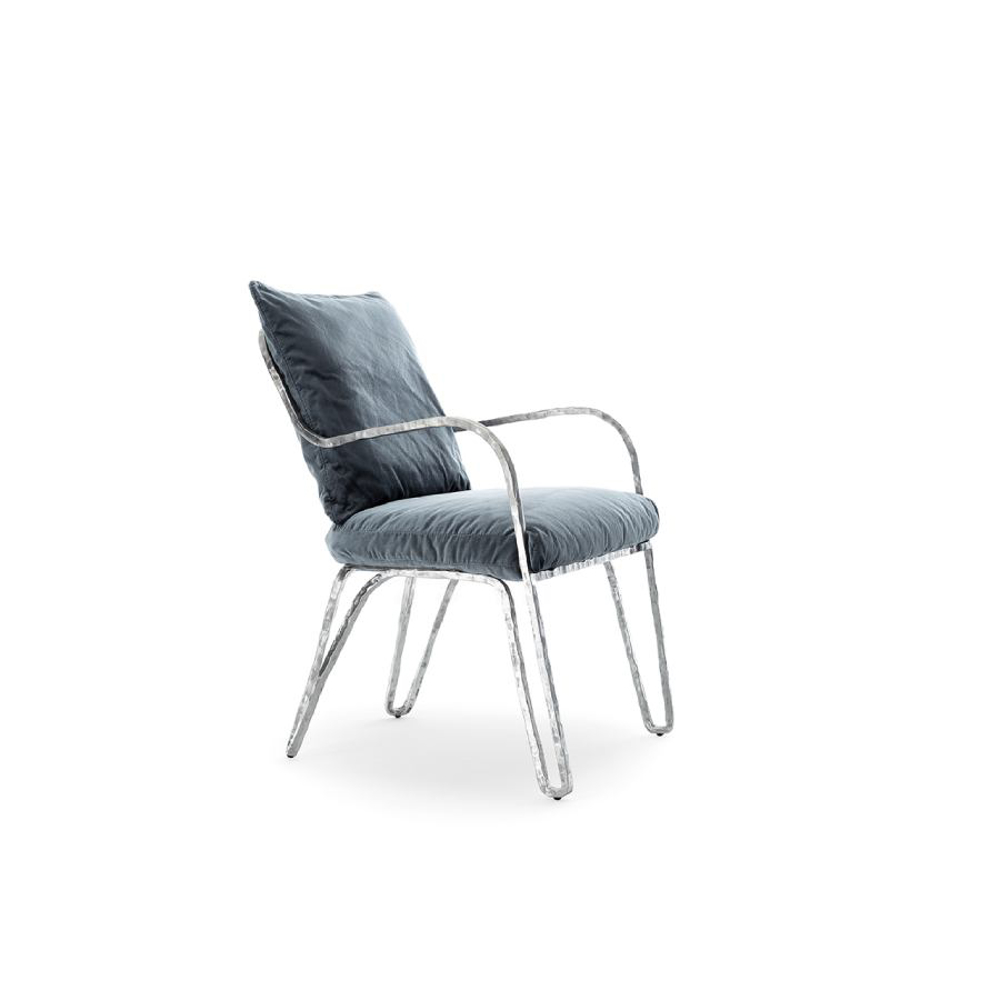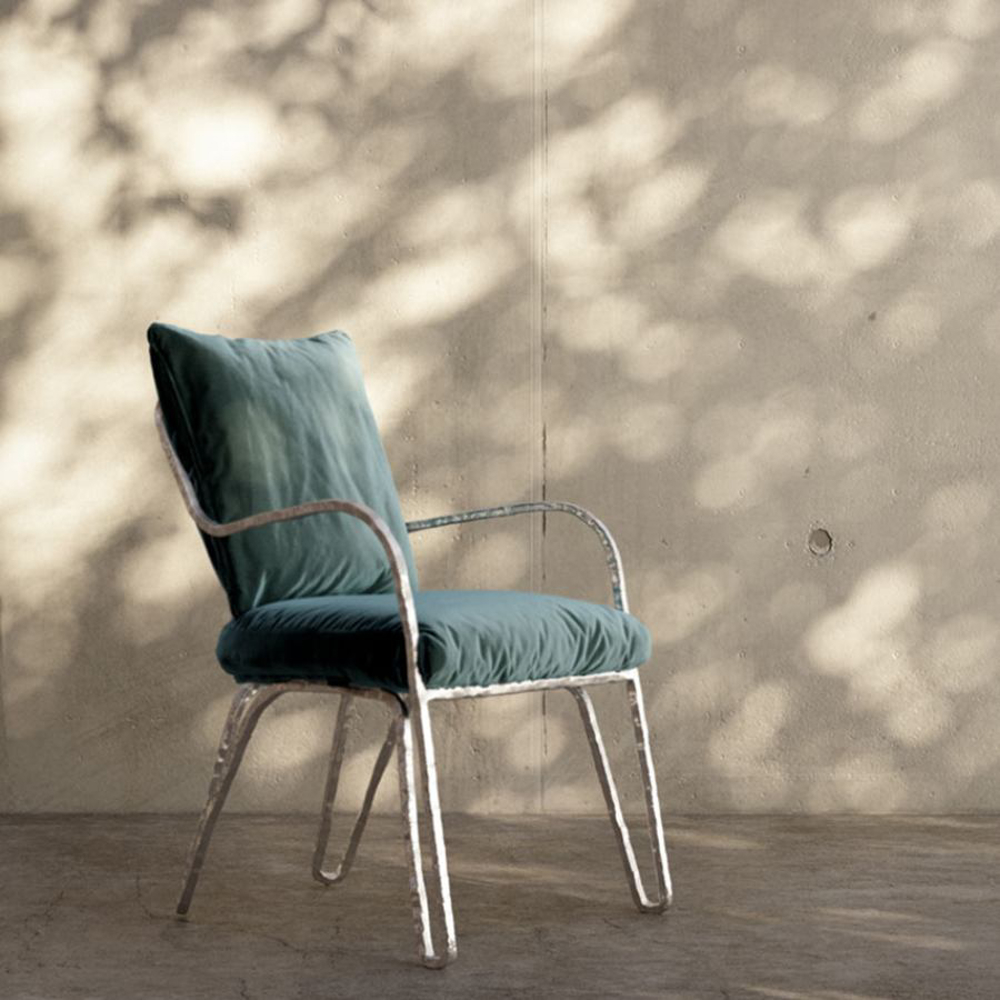 Metal structures with sculptural shapes embrace soft padding in the Moonlight collection, a family of seats and complements you can freely mingle and create a casual and welcoming atmosphere.