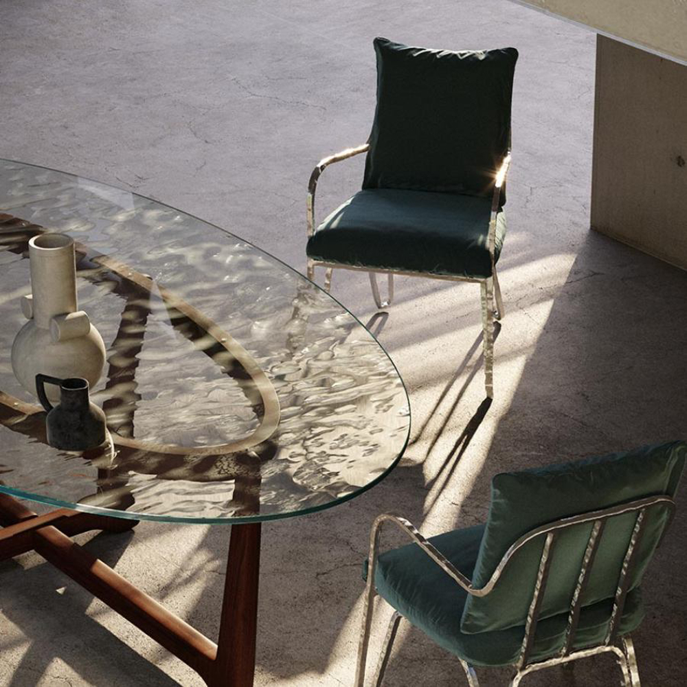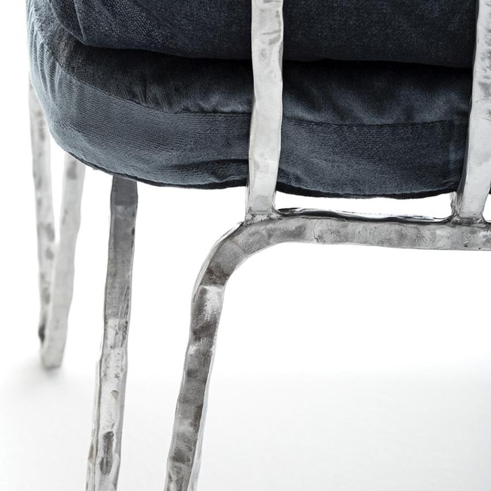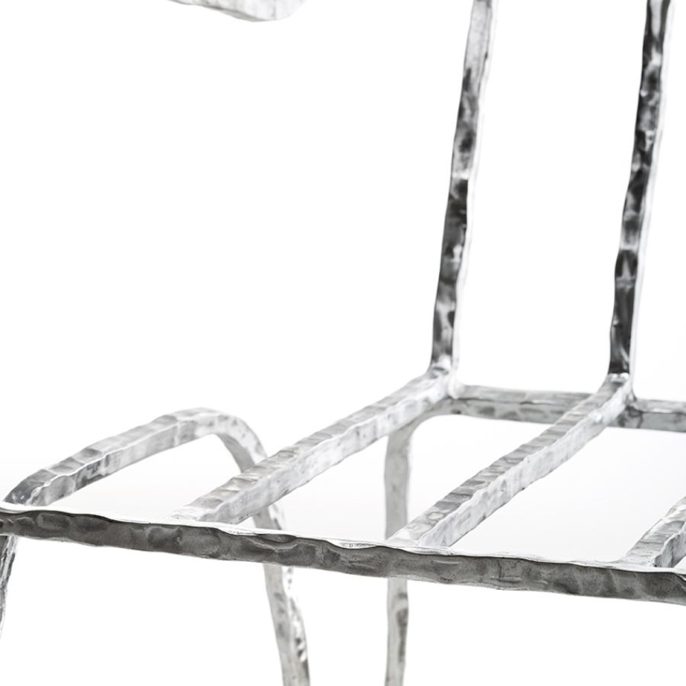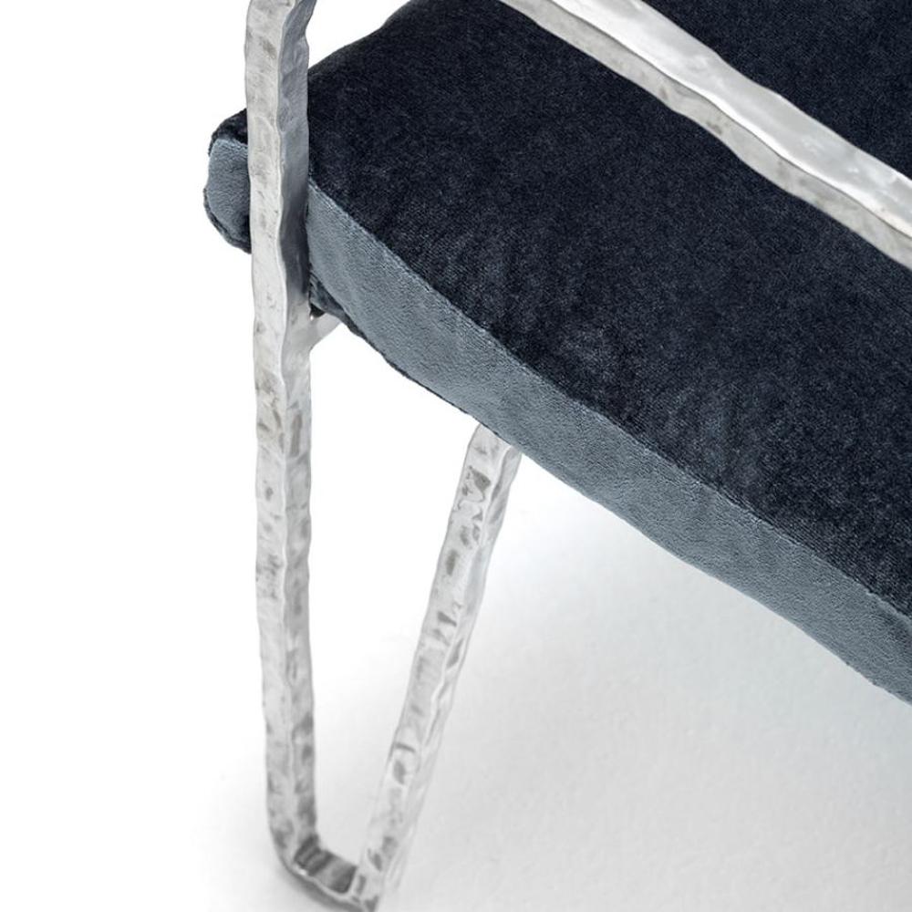 Made of bronze or an anticorodal aluminum alloy, the Moonlight Chair is naturally suitable for outdoor environments. The extraordinary strength of the materials ensures its durability without weighing down the structure. Anticorodal aluminum, commonly used in the aerospace industry, exhibits high resistance to corrosion, making it unaffected by the passage of time. In the bronze version, the metal surface evolves over the years, acquiring an increasingly captivating finish that bestows a unique appearance.
