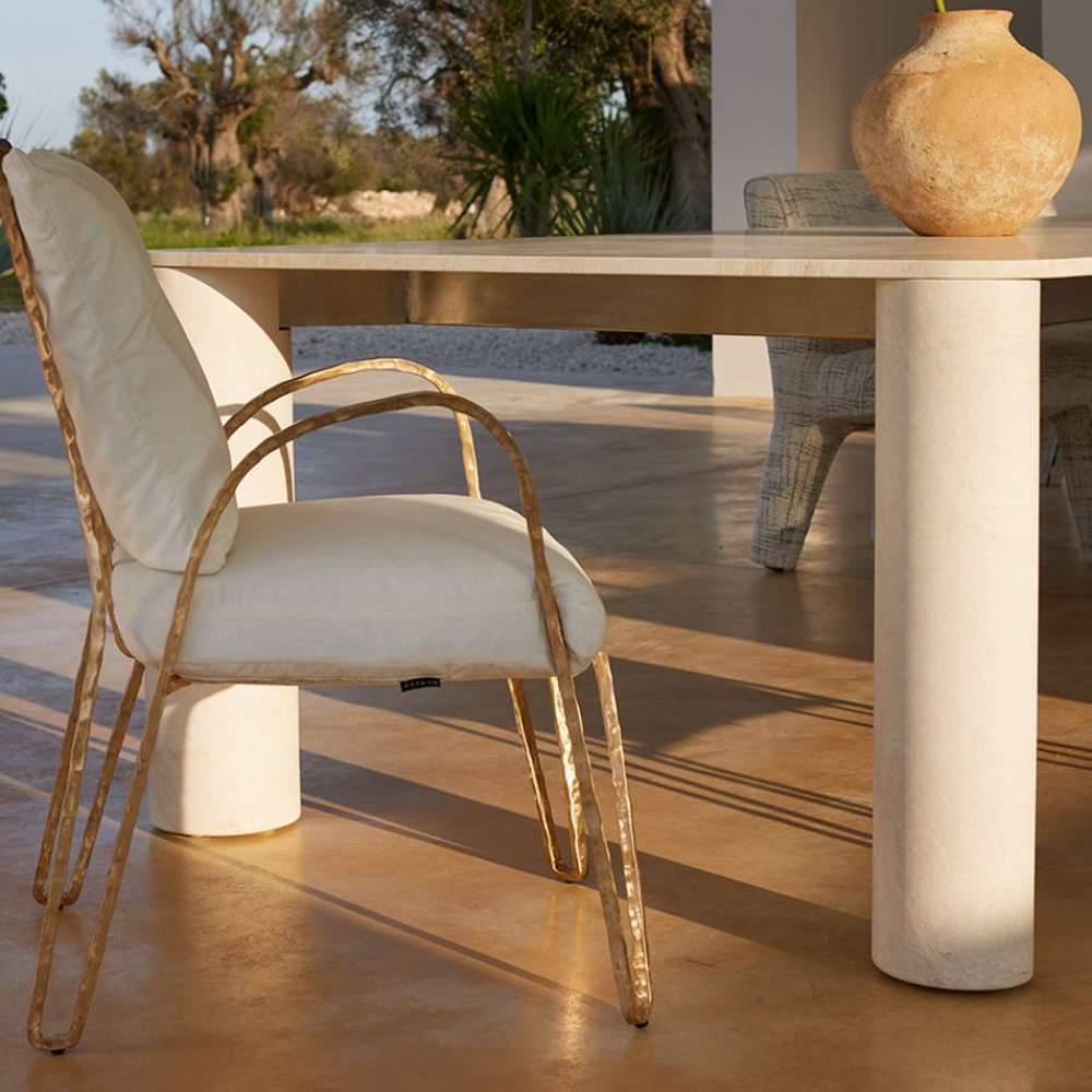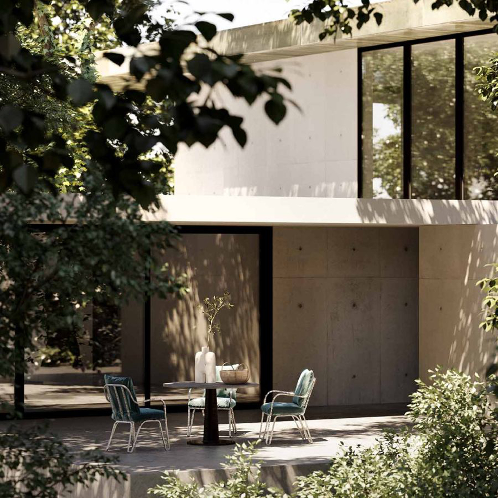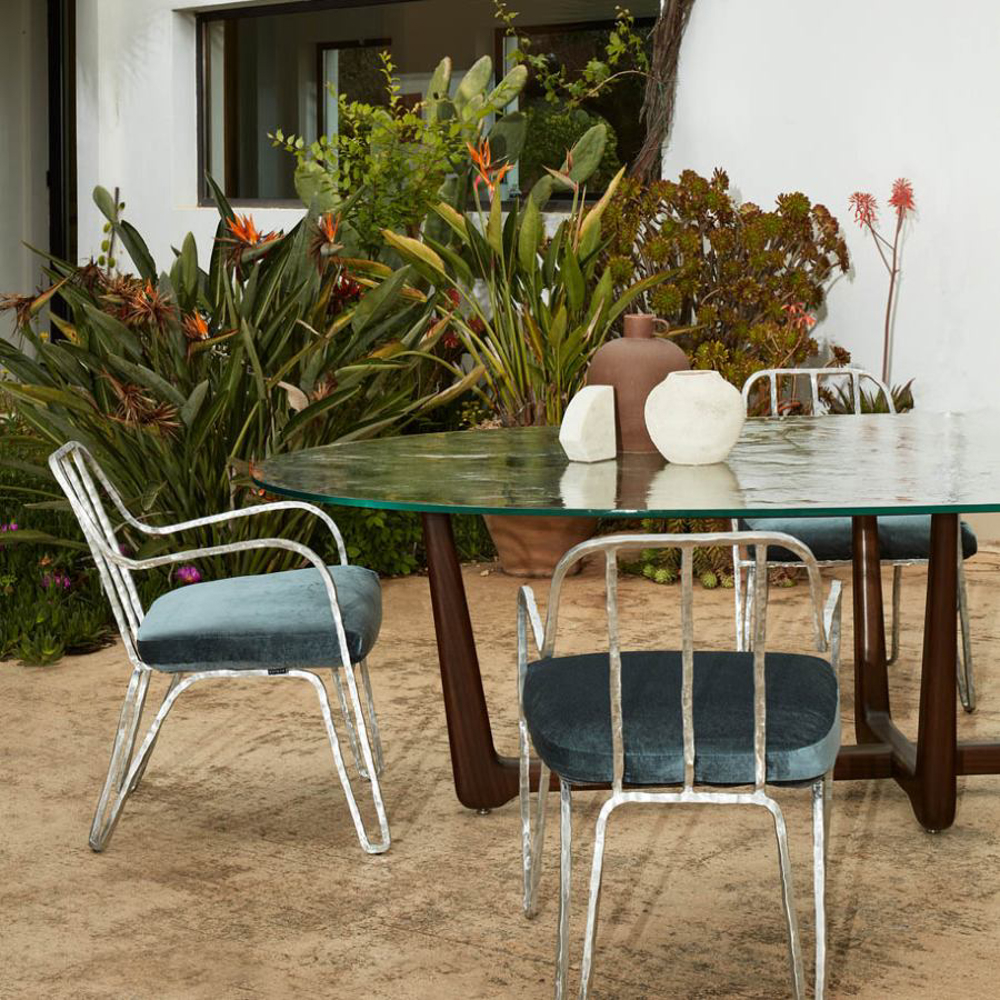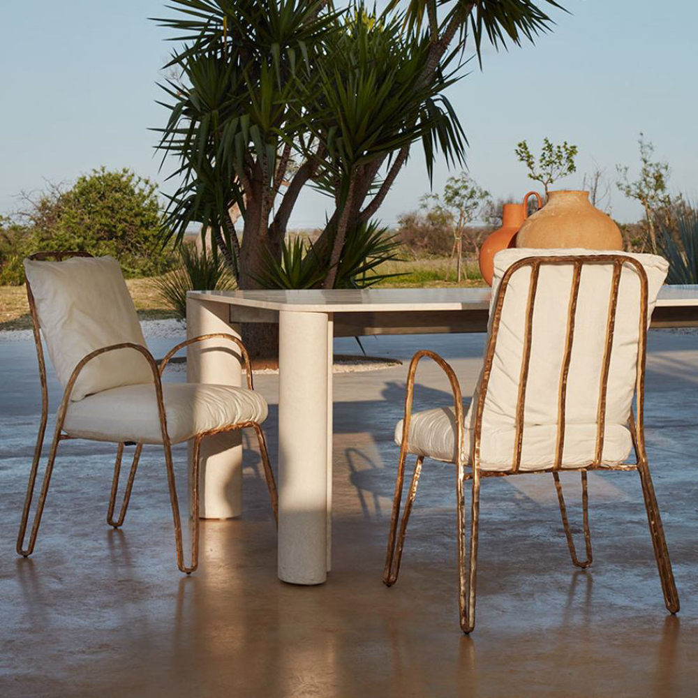 Made of bronze or an anticorodal aluminum alloy, the Moonlight Chair is naturally suitable for outdoor environments. The extraordinary strength of the materials ensures its durability without weighing down the structure. Anticorodal aluminum, commonly used in the aerospace industry, exhibits high resistance to corrosion, making it unaffected by the passage of time. In the bronze version, the metal surface evolves over the years, acquiring an increasingly captivating finish that bestows a unique appearance.