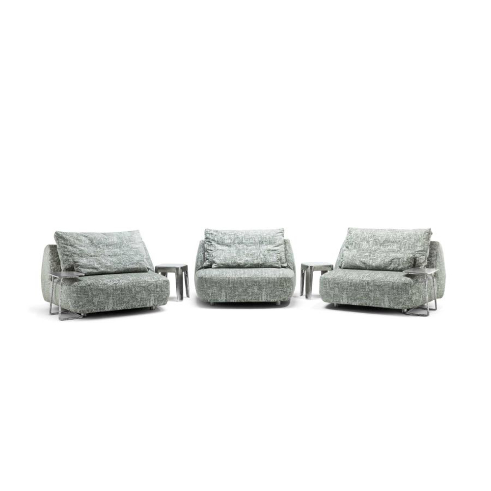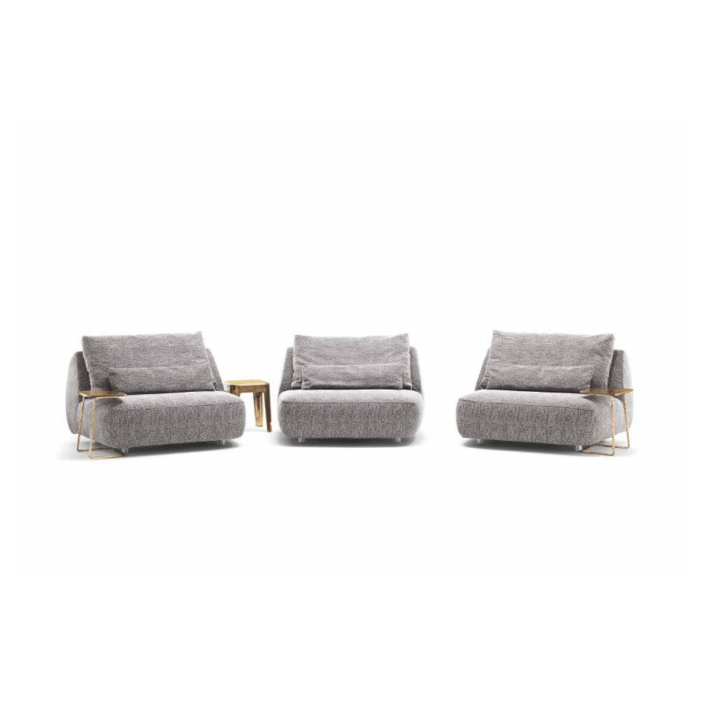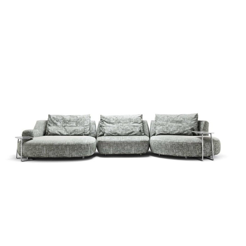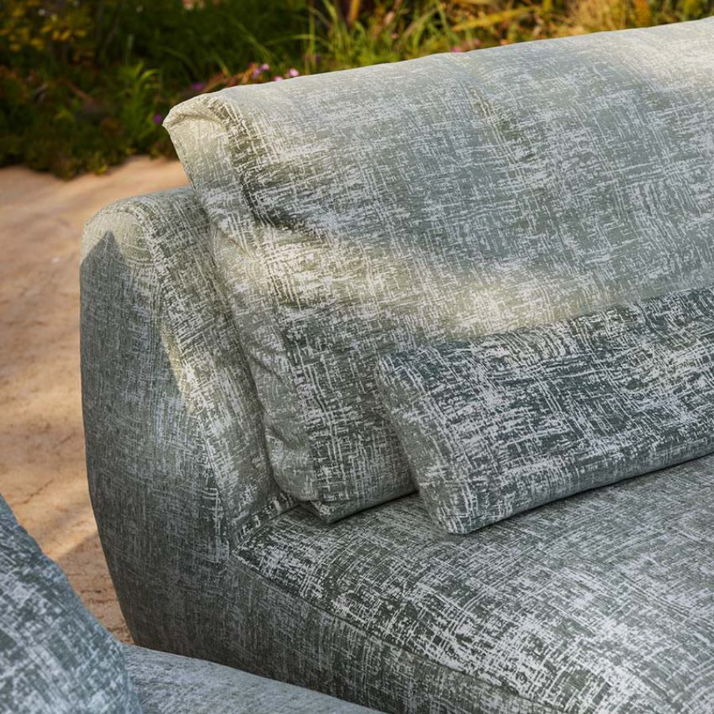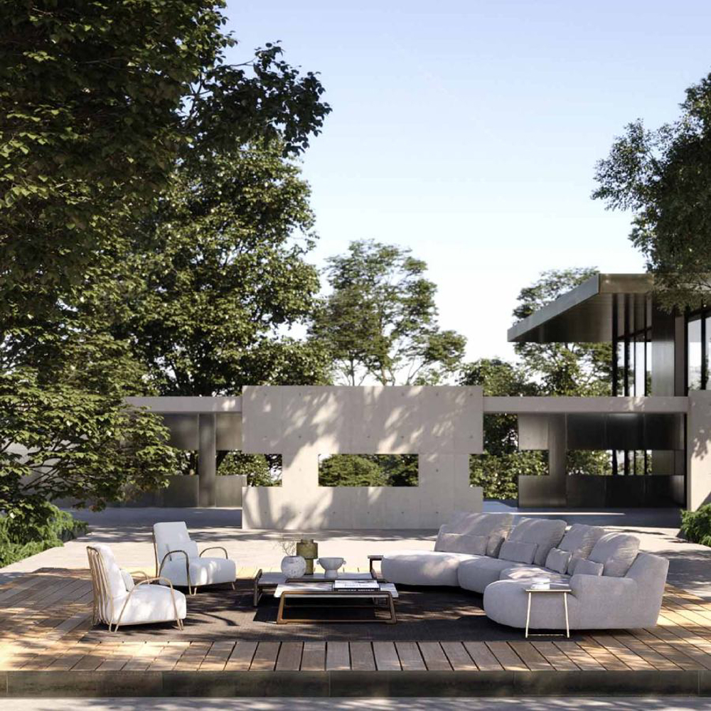 The different modules, with or without armrests, can stand on their own or together, creating various compositions. The seatback and backrest complete the sofa, making it perfect for beach clubs or poolside living areas.