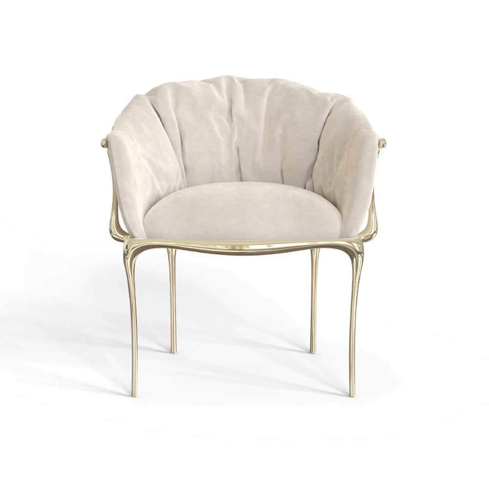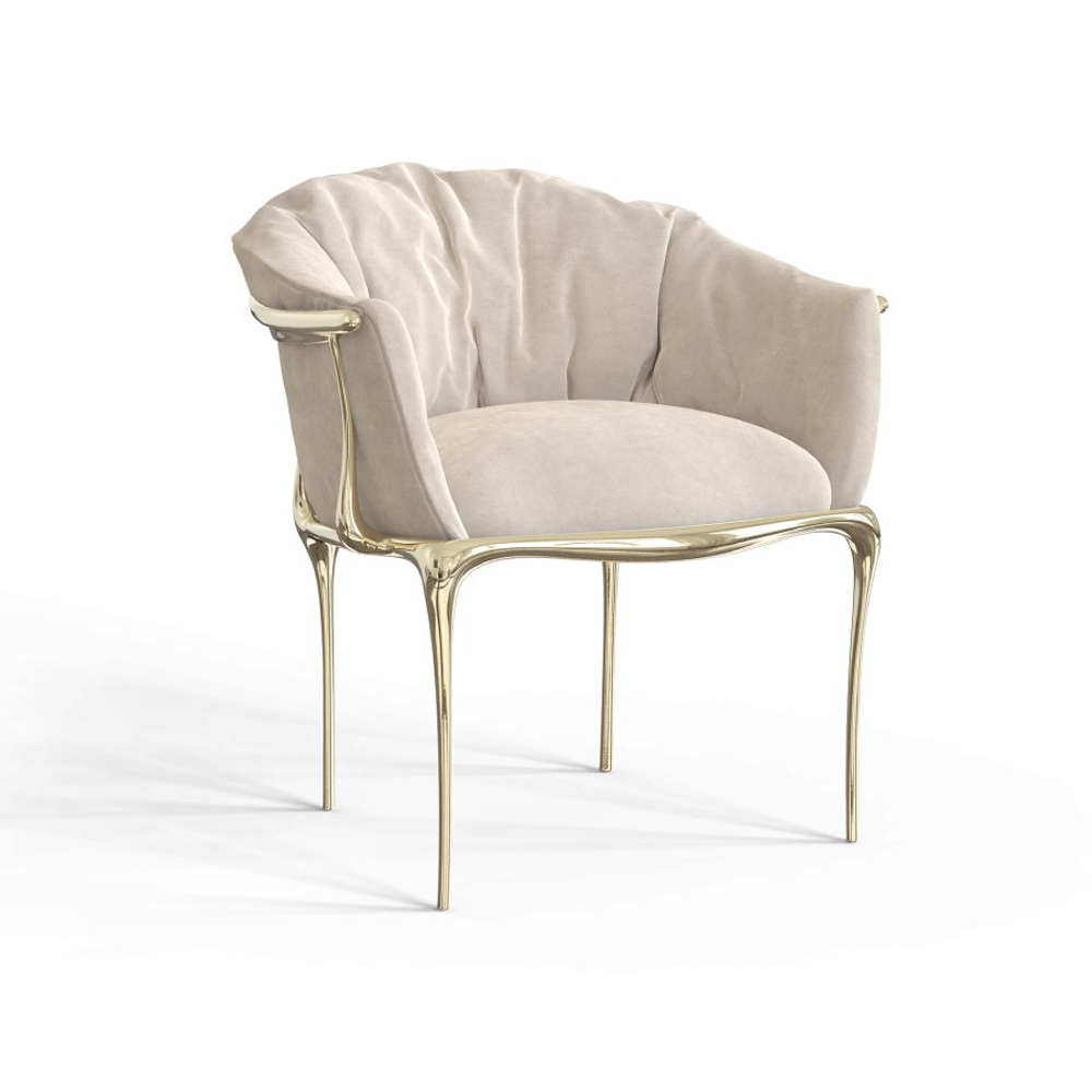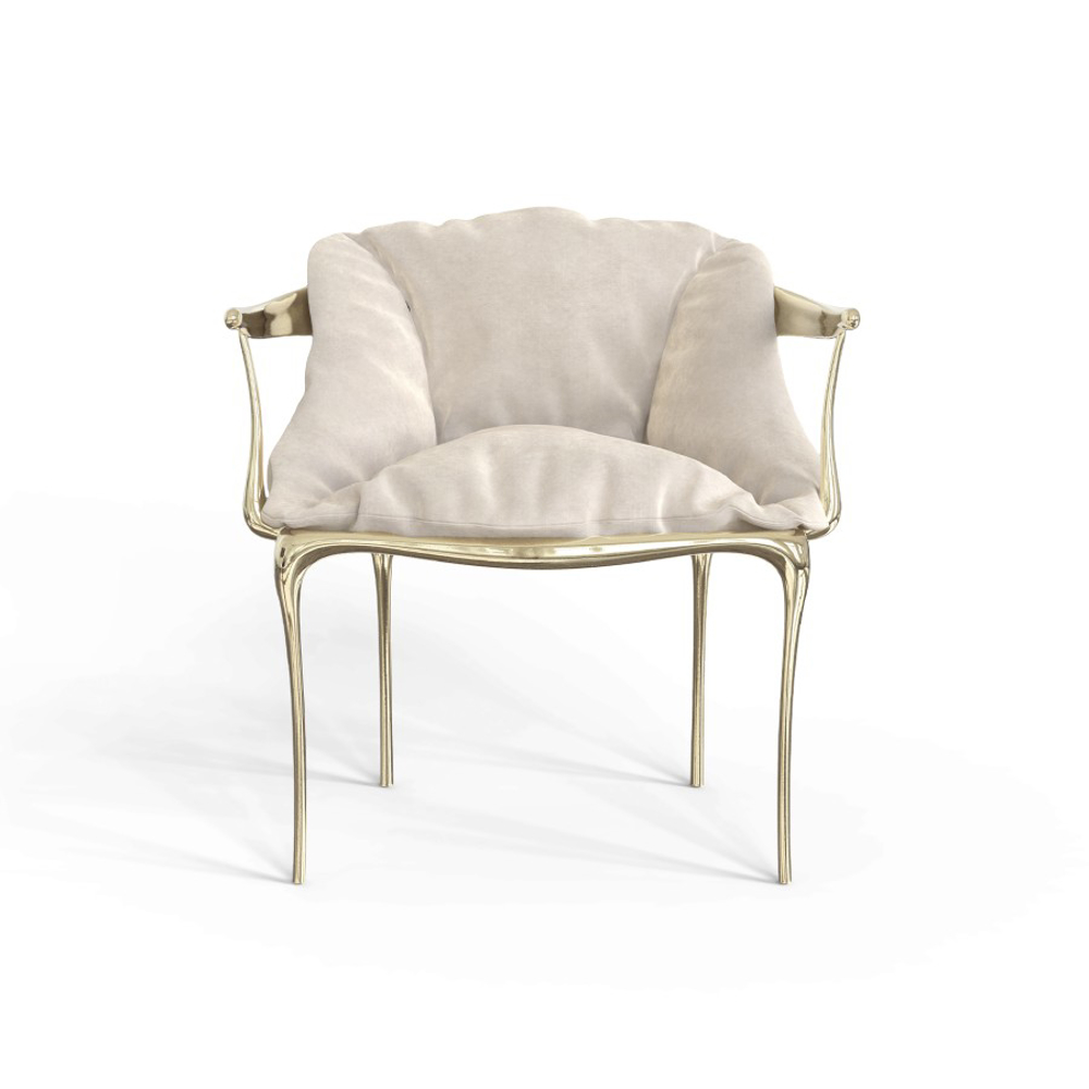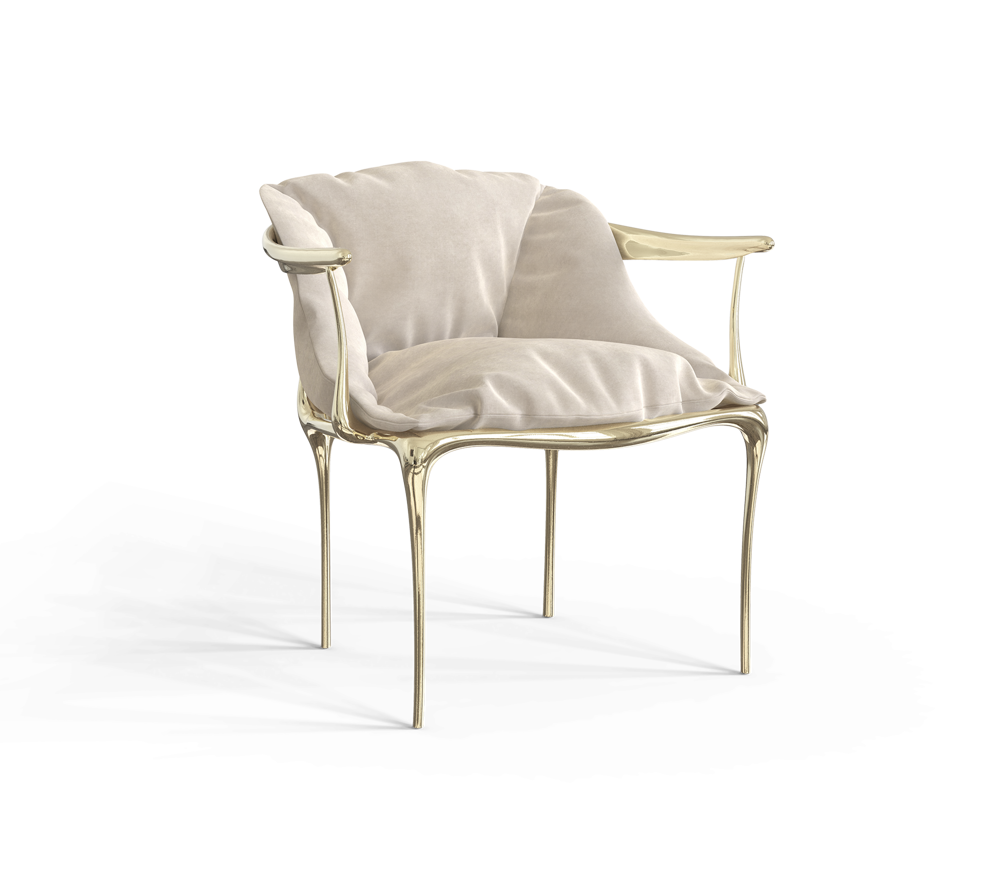 This accent chair features a large bow back rail that’s held by languid spindles that drip solid metal from the apron up, while the legs are lavishly curved creating a visual effect that defies the laws of physics. The seat is upholstered in fine velvet and is available in different colors to better suit any upscale dining or living room. Combining an avant-garde approach with classic and emblematic lines, Nº 11 features remarkable craftsmanship and embodies the richest metalwork techniques from which skilled artisans built their reputation throughout the years. A statement chair to enhance a glamorous experience and memorable moments.