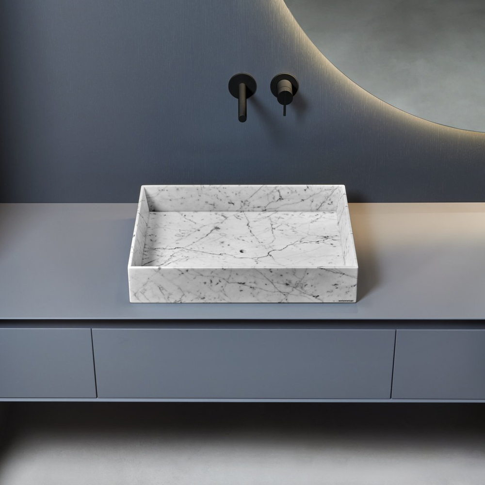 Nabatei Square Top Mount Stone Sink Marble 21.65"