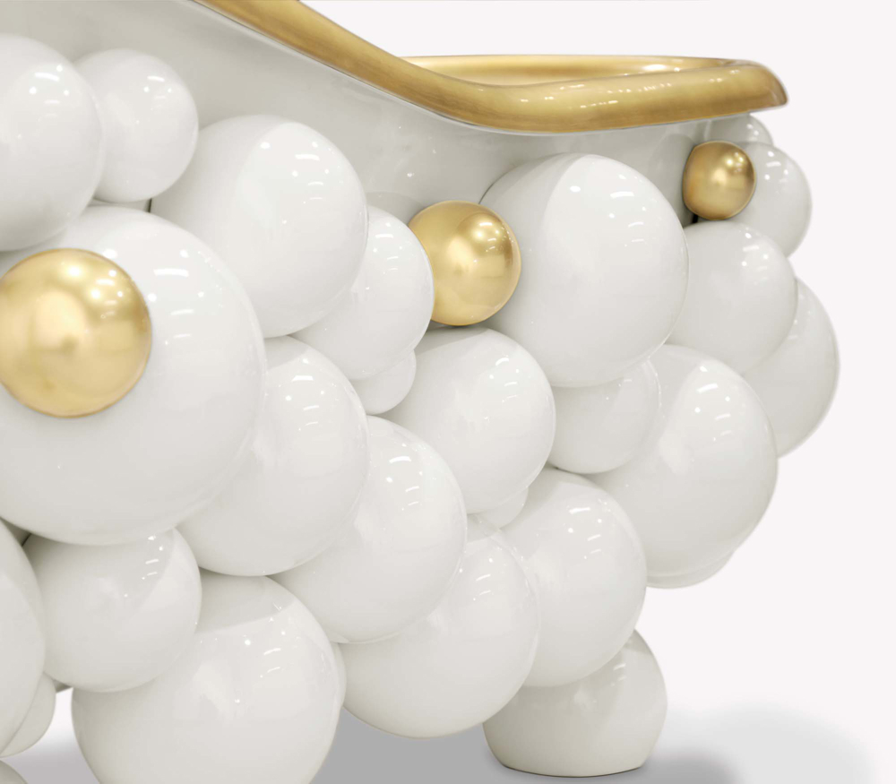 White lacquer brass spheres with high gloss varnish finishing and some gold plated spheres on the base.