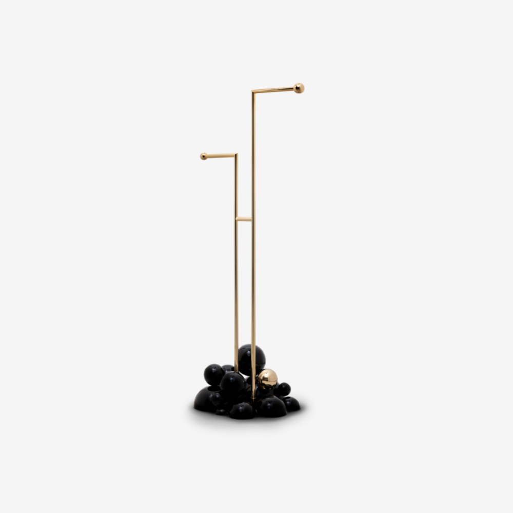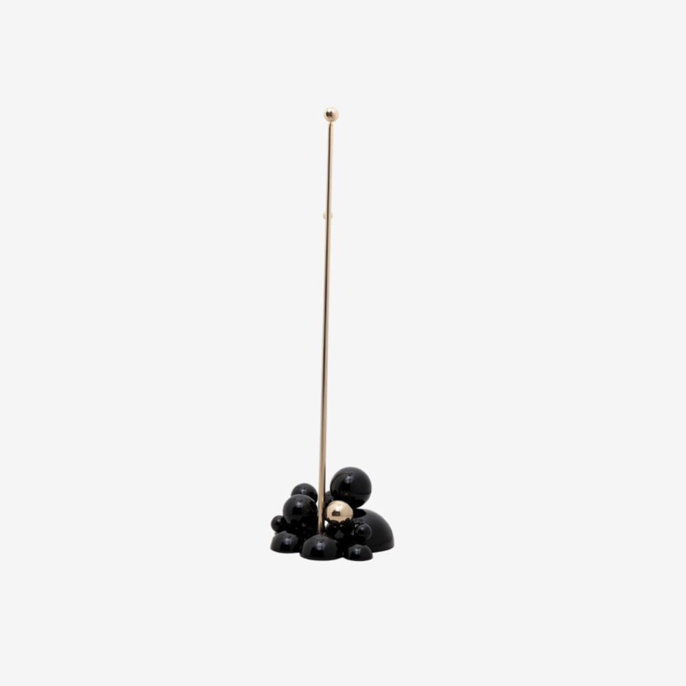 Tubes: Polished Brass; High Gloss Varnish; Base: Black lacquered spheres with high gloss varnish finishing and some gold plated spheres.