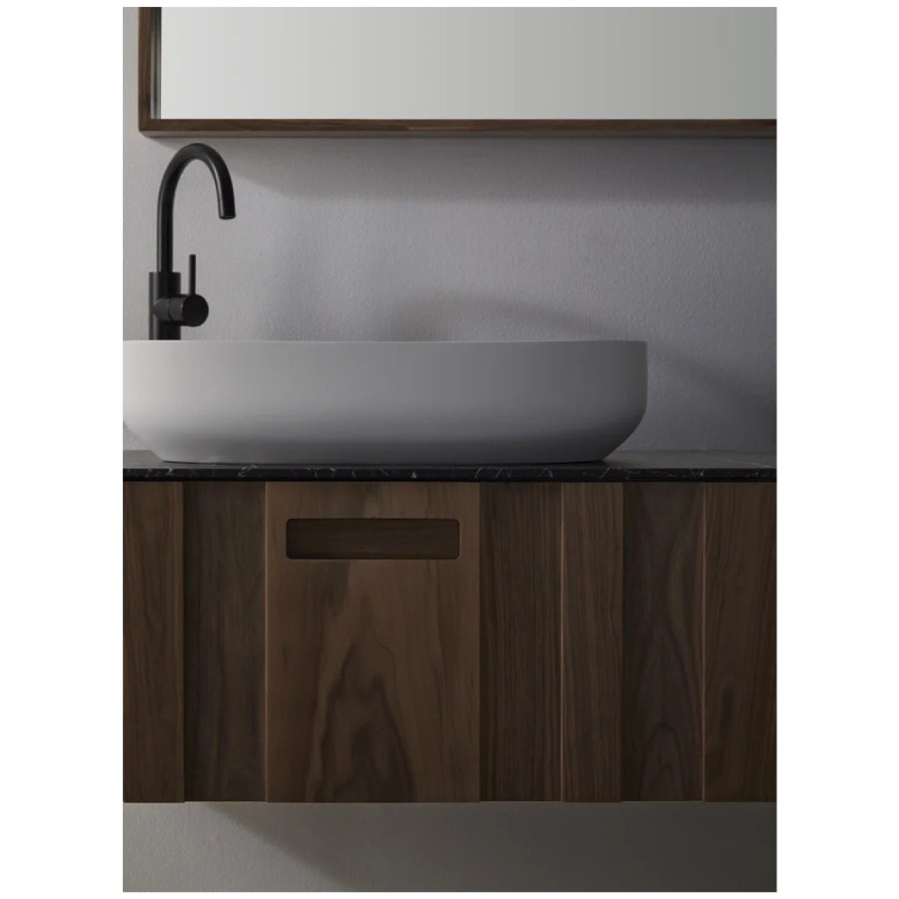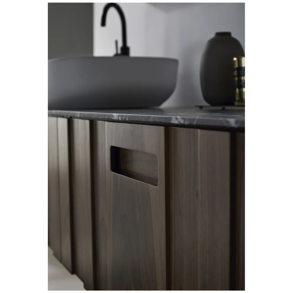 Nigella is a unit that is made in its entirety from solid American walnut. The vertical panels, which make up the drawer fronts together with their different thicknesses, are the main defining characteristic of this unit. This is further highlighted in their different natural shades.