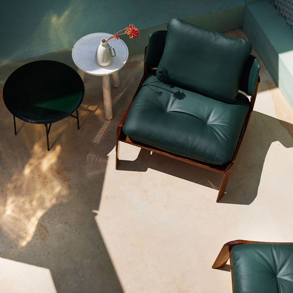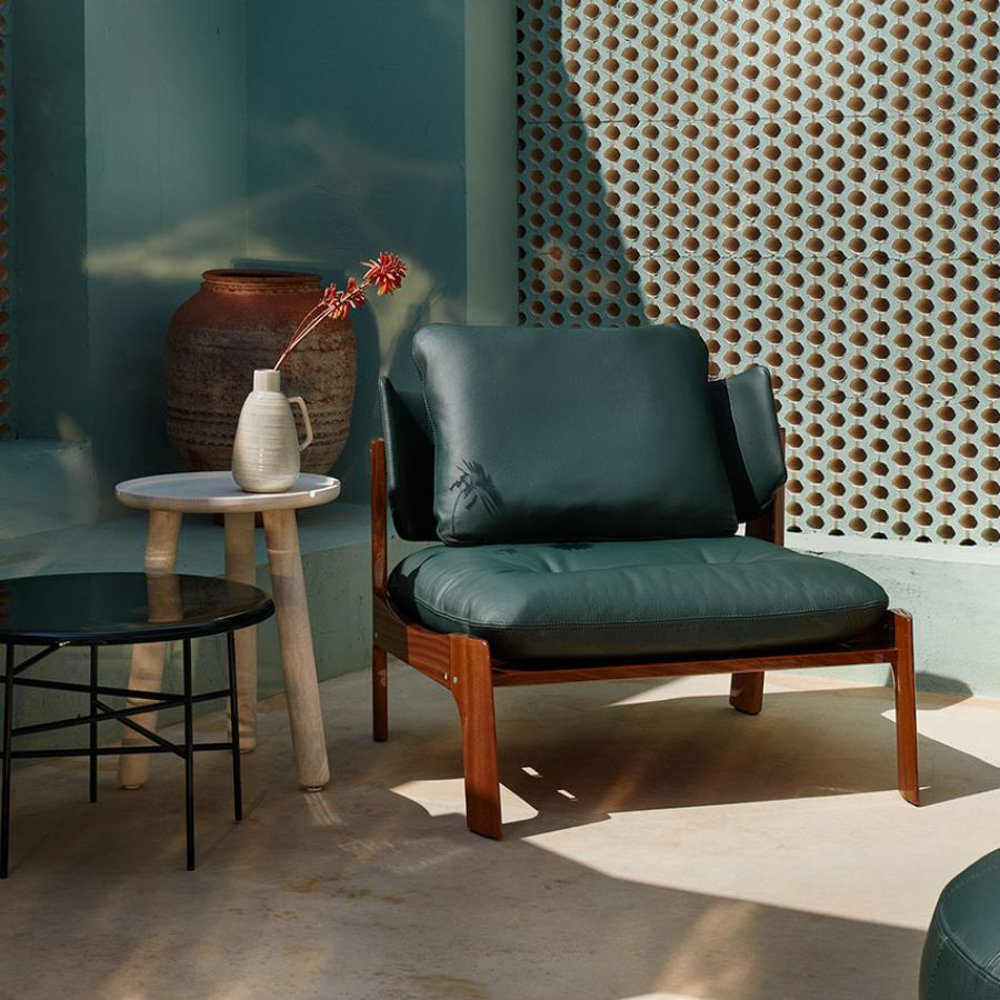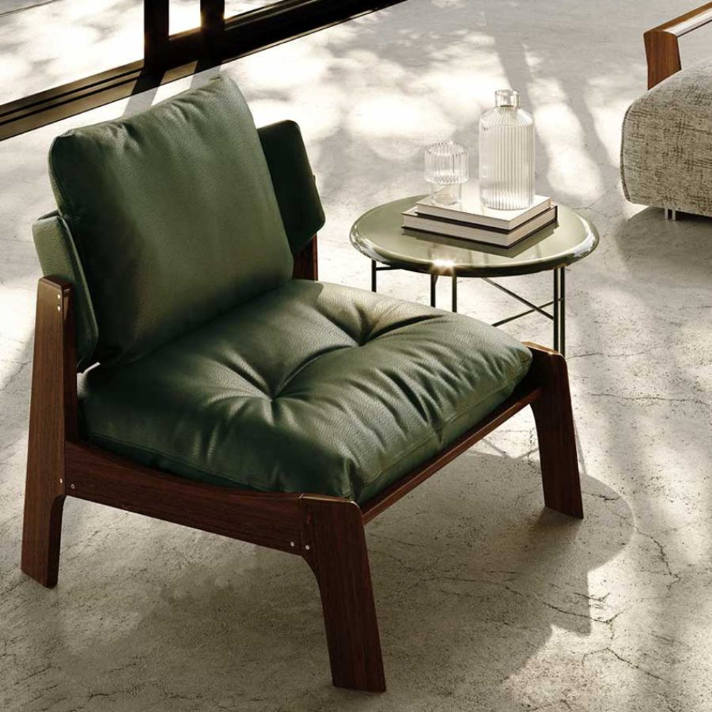 Wood is highly resistant to weather elements. Equipped with comfortable padding, the armchair is eco-friendly and long-lasting precisely because no glue is used in its construction.