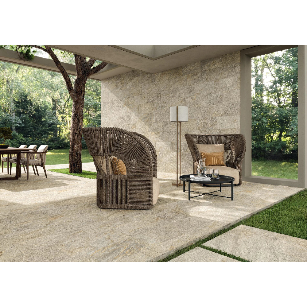 Composed almost entirely of quartz and small quantities of other minerals that create color changes and nuances, the stone-effect porcelain tiles of this collection stand out for their strong realism, detailed graphics, and great color richness.