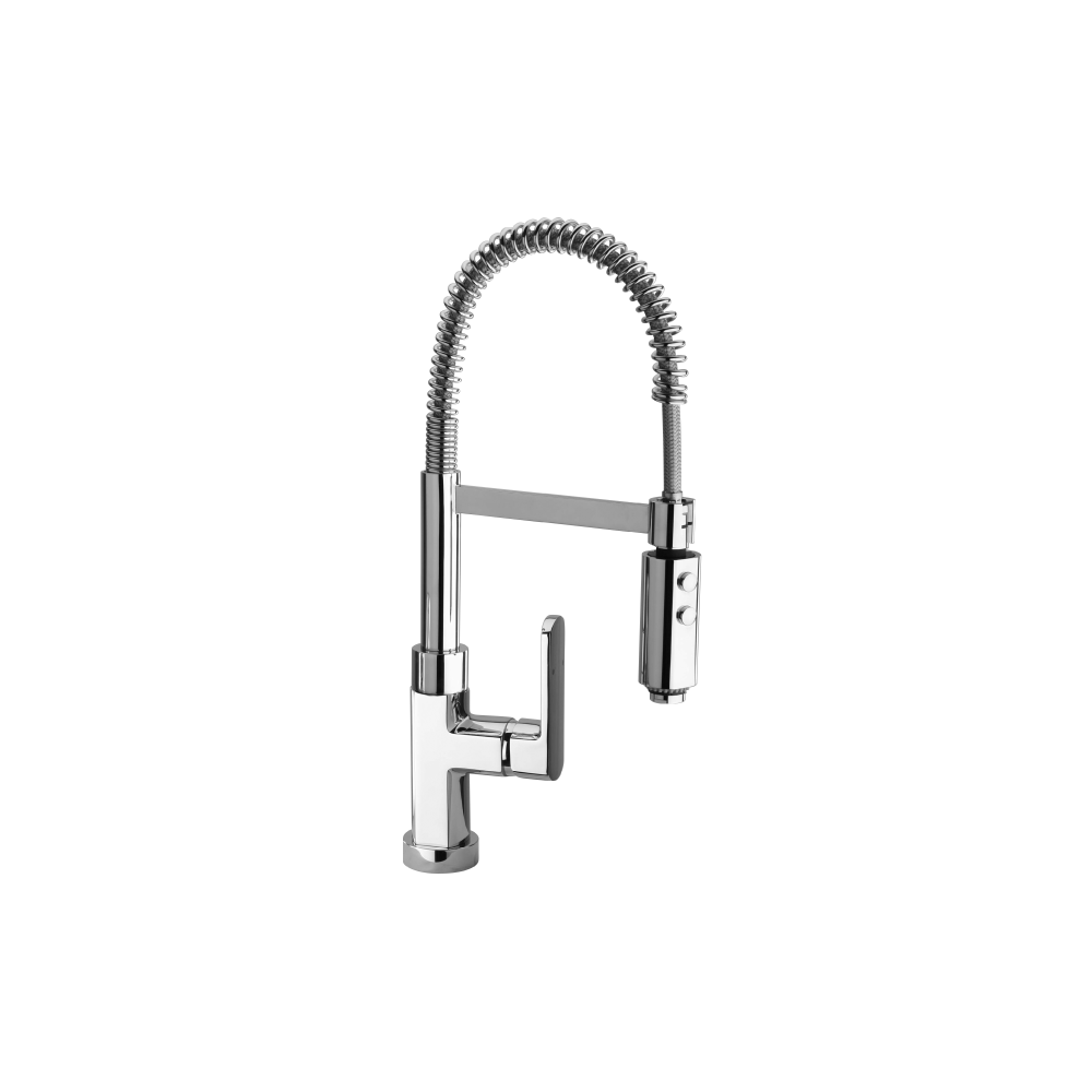 This standard single-hole, high-arc, deck-mount faucet is perfect for any kitchen. Choose between a stream or spray function. This faucet is water-efficient, lead-free, ADA compliant, and comes equipped with a ceramic disc cartridge. The Single Handle Pull-out With spring Spout And A Sprayer spout Rotates is made with a solid brass construction with a silicone hose and 100% exquisitely Italian made.