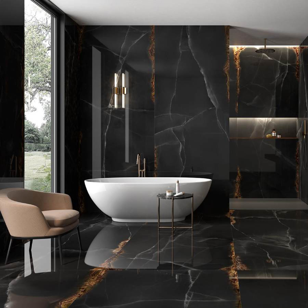 Large Format Spanish Tile Onice Black 47 1/4"x118" 1/4" Polished