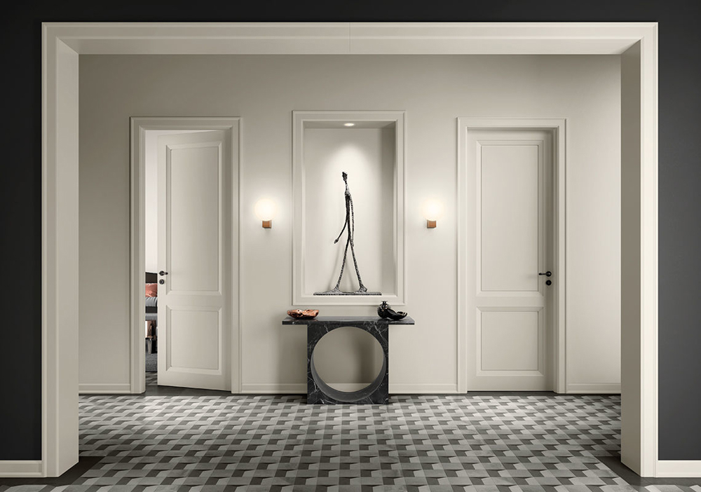 Open interprets spaces in modern or classic key also based on the selected frame, with shaped or smooth architraves: discover all the details in the catalogue.