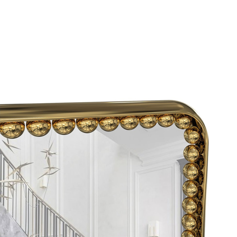 DESCRIPTION Orbis is an elegant mirror with a rectangular shape. The detailed frame, which is decorated with little golden spheres, it is made of gold-plated brass and brings a modern touch to any beautiful luxury bathroom design. Stylish and glamorous the Orbis can be hung vertically or horizontally, fitting your needs.