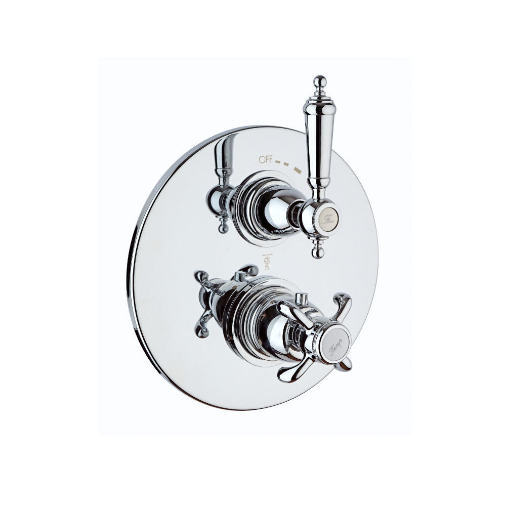 Ceto thermostatic trim with 3/4" ceramic disc volume control and 1/2" inlet connections. This is available in Polished Chrome, Brushed Nickel, or Tuscan Bronze.