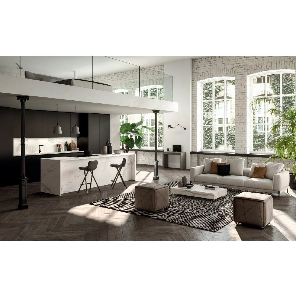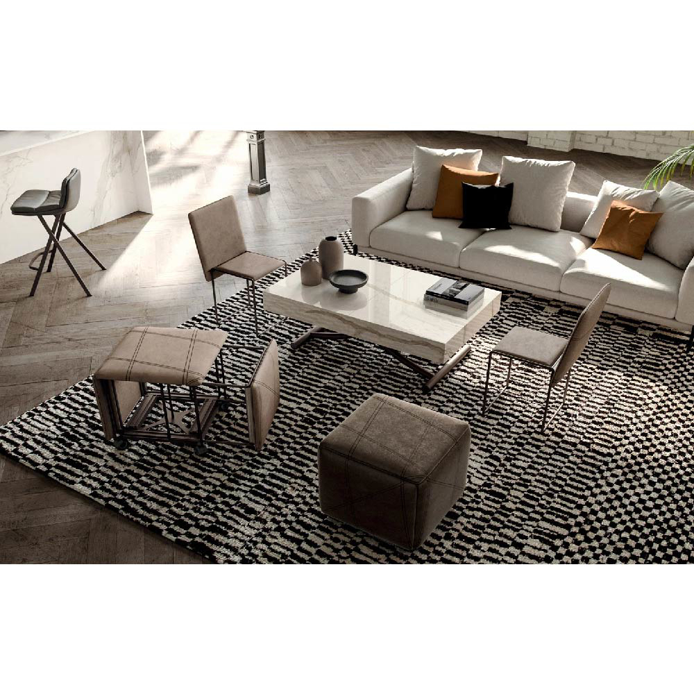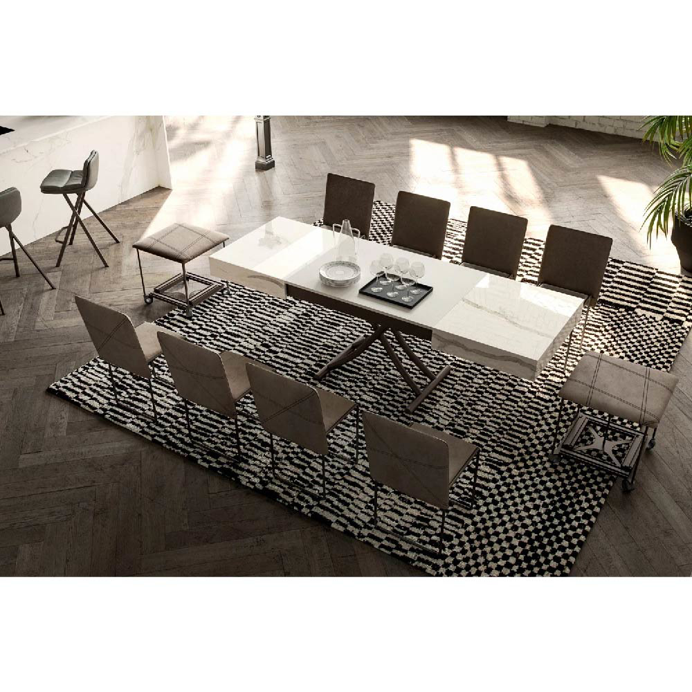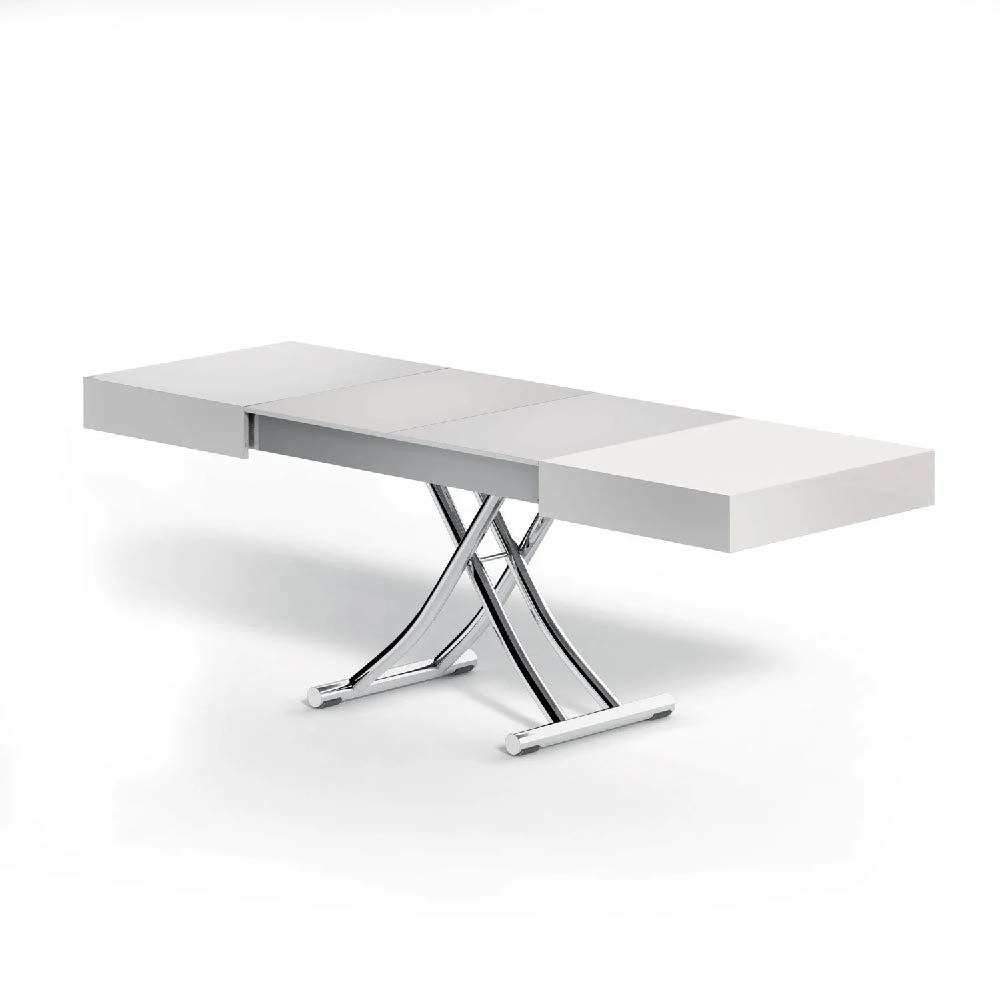 Extensions cleverly hidden inside the top, synchronized telescopic opening, millimeter-assisted lift with gas piston and hidden wheels for an easy movement in the living area.