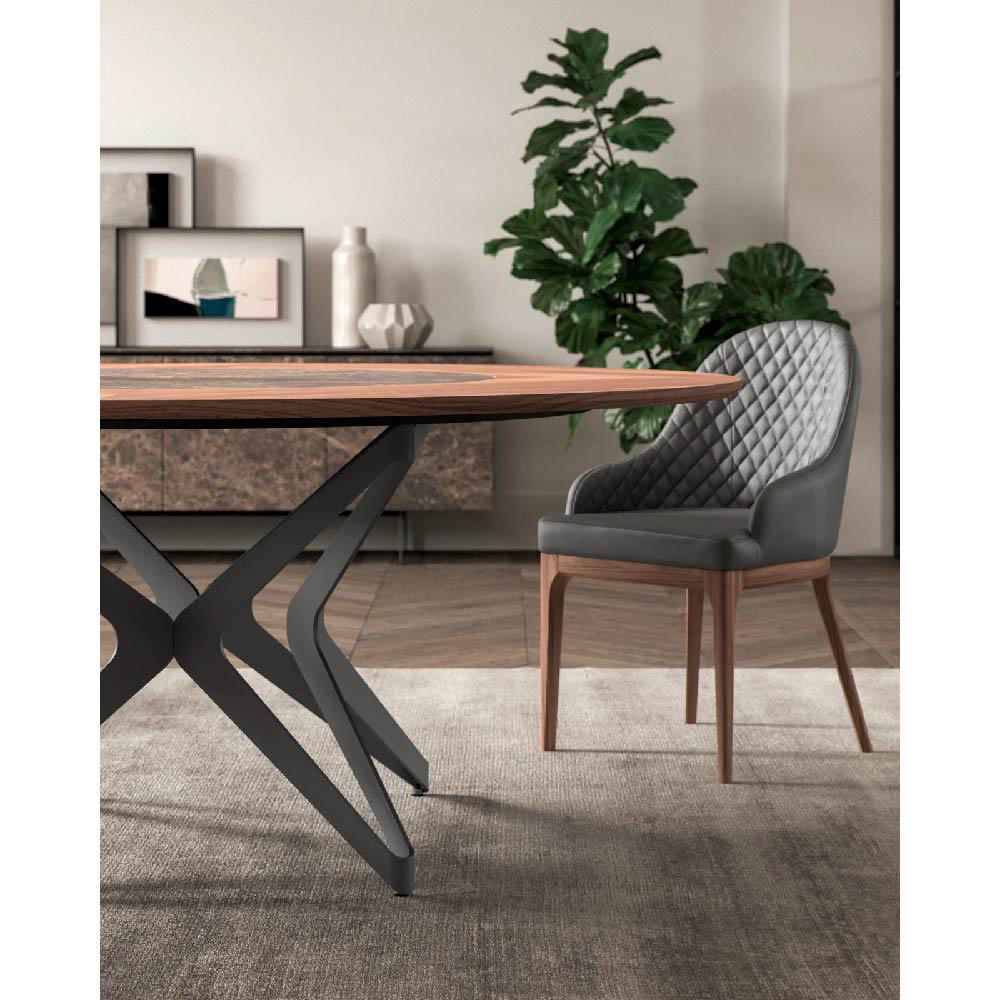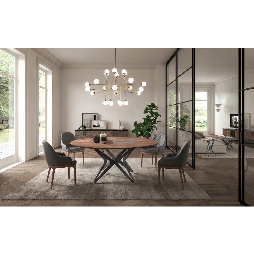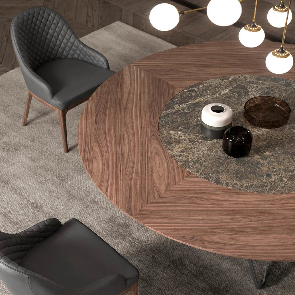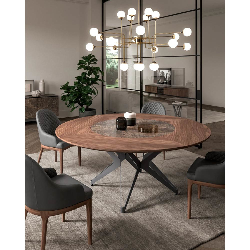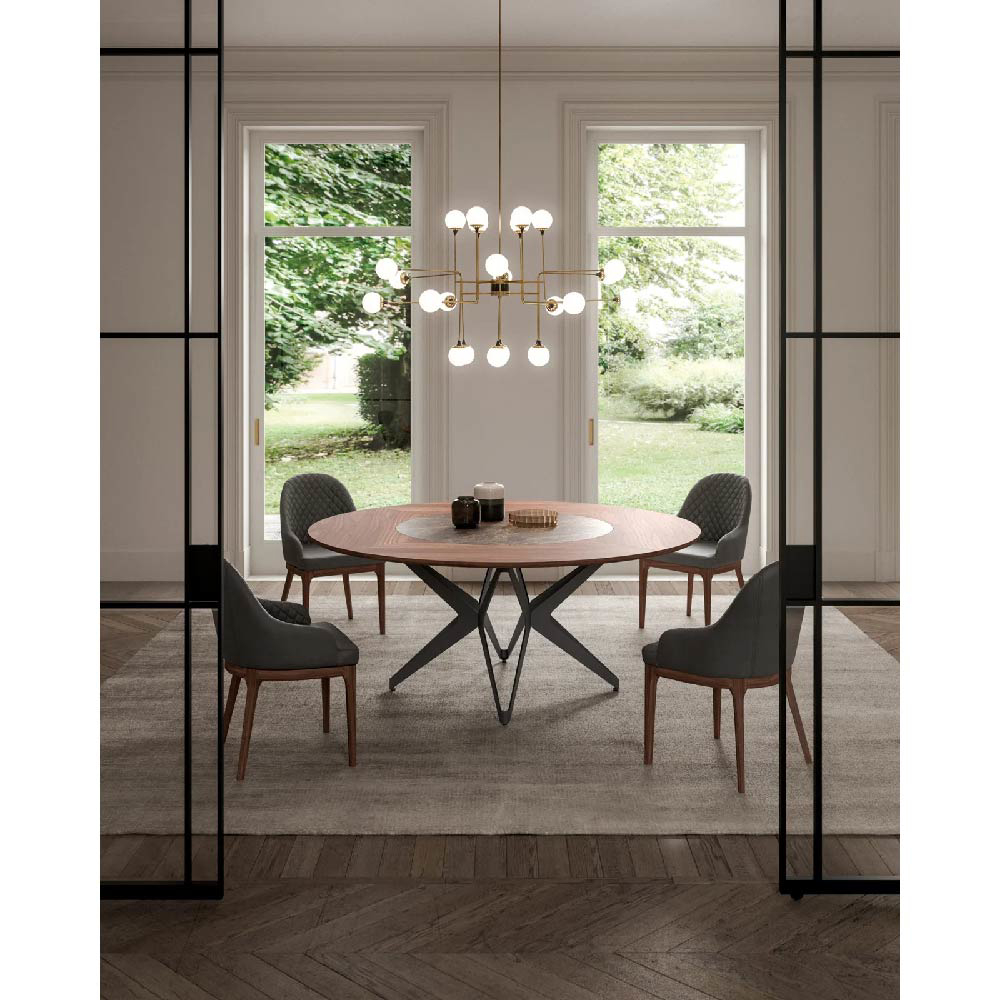 Table with Ø 100 swivel tray embedded in the top, the rotation is 360° on a vertical axis. Metal base and height-adjustable feet.